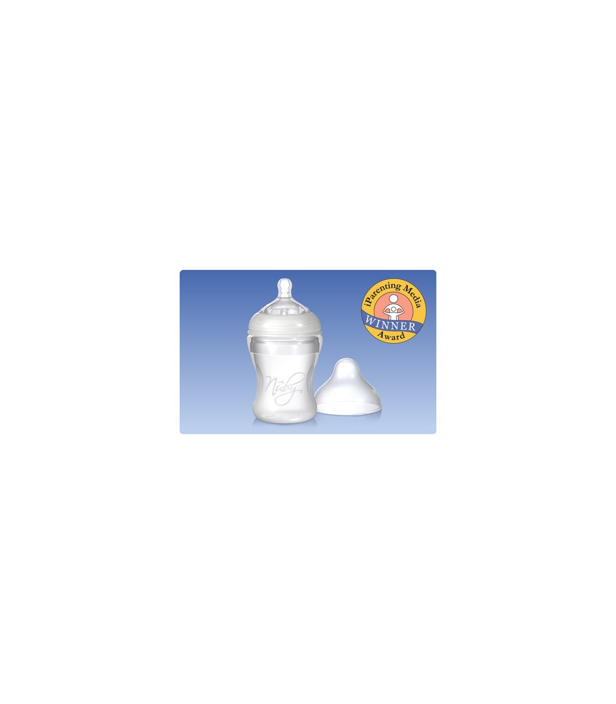 شیشه شیر پلی پروپیلین 240 میلی لیتری نچرال تاچ نابی دارای سر شیشه شیر سیلیکونی با جریان اندک می باشد. سر شیشه شیر سیلیکونی نچرال تاچ  حالت و اندازه نوک سینه مادر را تقلید می نماید.