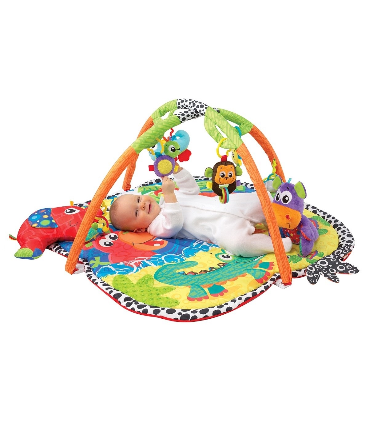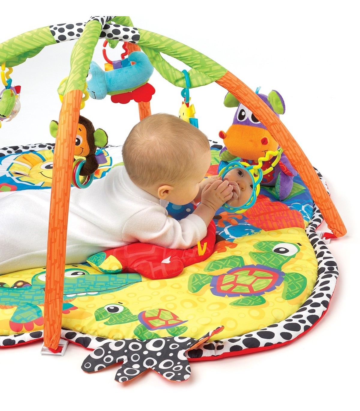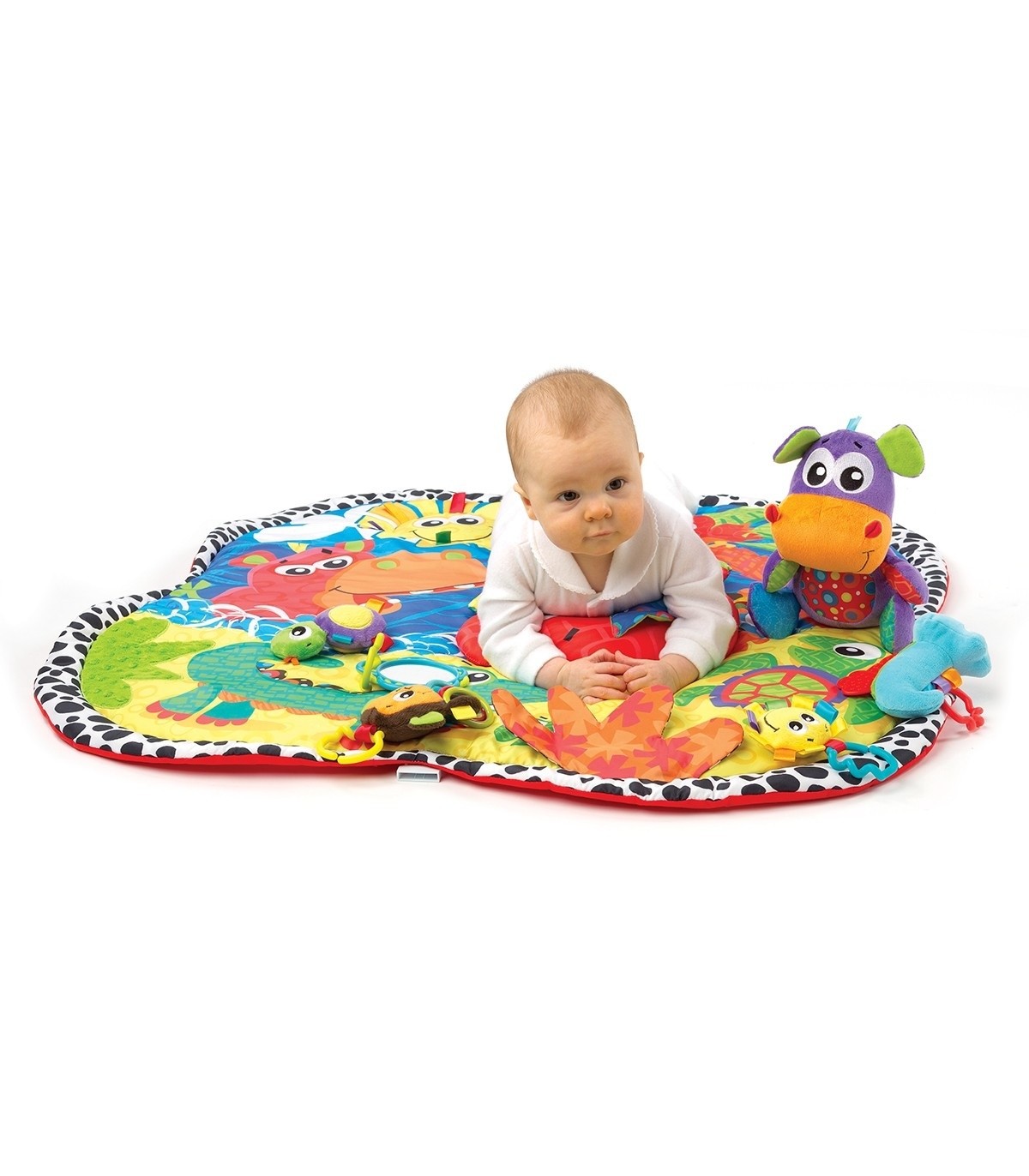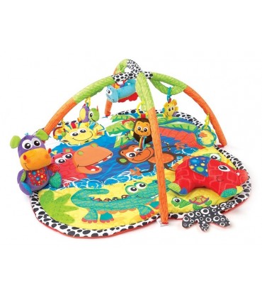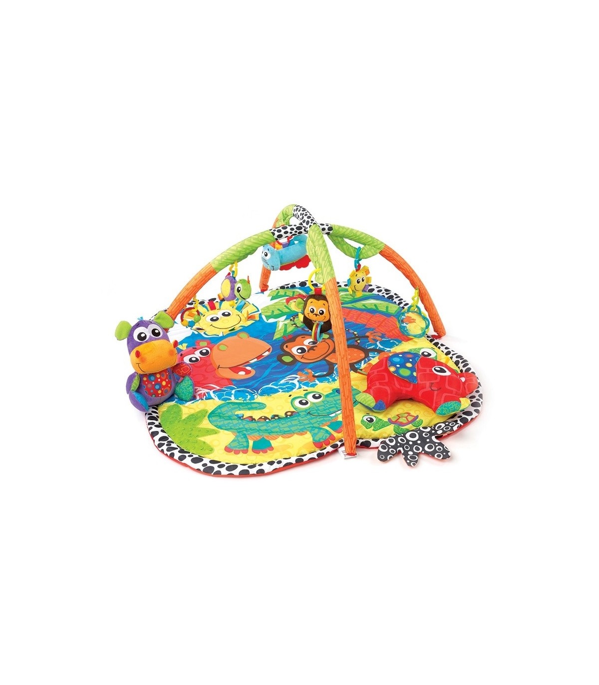 این تشک بازی با طرح جنگل کودک شما را به وجد می‌‌آورد. این تشک از طراحی منحصر به فردی برای تشویق کودک هنگام بازی و خوردن غذا برخوردار است که شامل کرگدن مخملی شیطون با گونه‌هایی‌ برجسته و نرم با قابلیت پخش موسیقی ملایم و زیبا،یک بالشت فیلی بزرگ برای نگاه داری کودک و همچنین تسکین دهنده درد شکم و تعدادی اسباب بازی که قابلیت جدا شدن هم دارند در بالای سر کودک قرار دارند که به تحرک وی کمک خواهند کرد و هر کدام از این عروسک‌ها ویژگی‌ منحصر به فرد خود را دارند که شامل ملودی‌های متفاوت و آینه ی منعکس کننده و روبان قابل لمس می‌‌باشند.