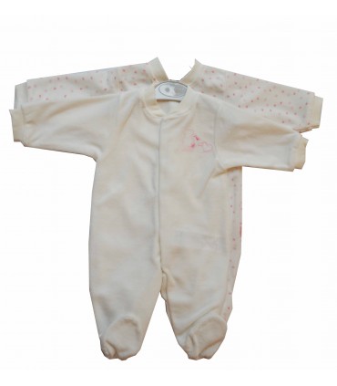 سرهمی حوله ای آستین بلند 2 عددی سفید و صورتی Bebetto