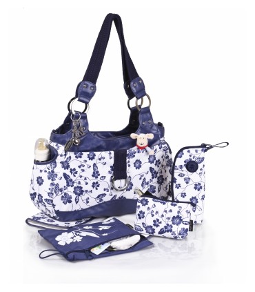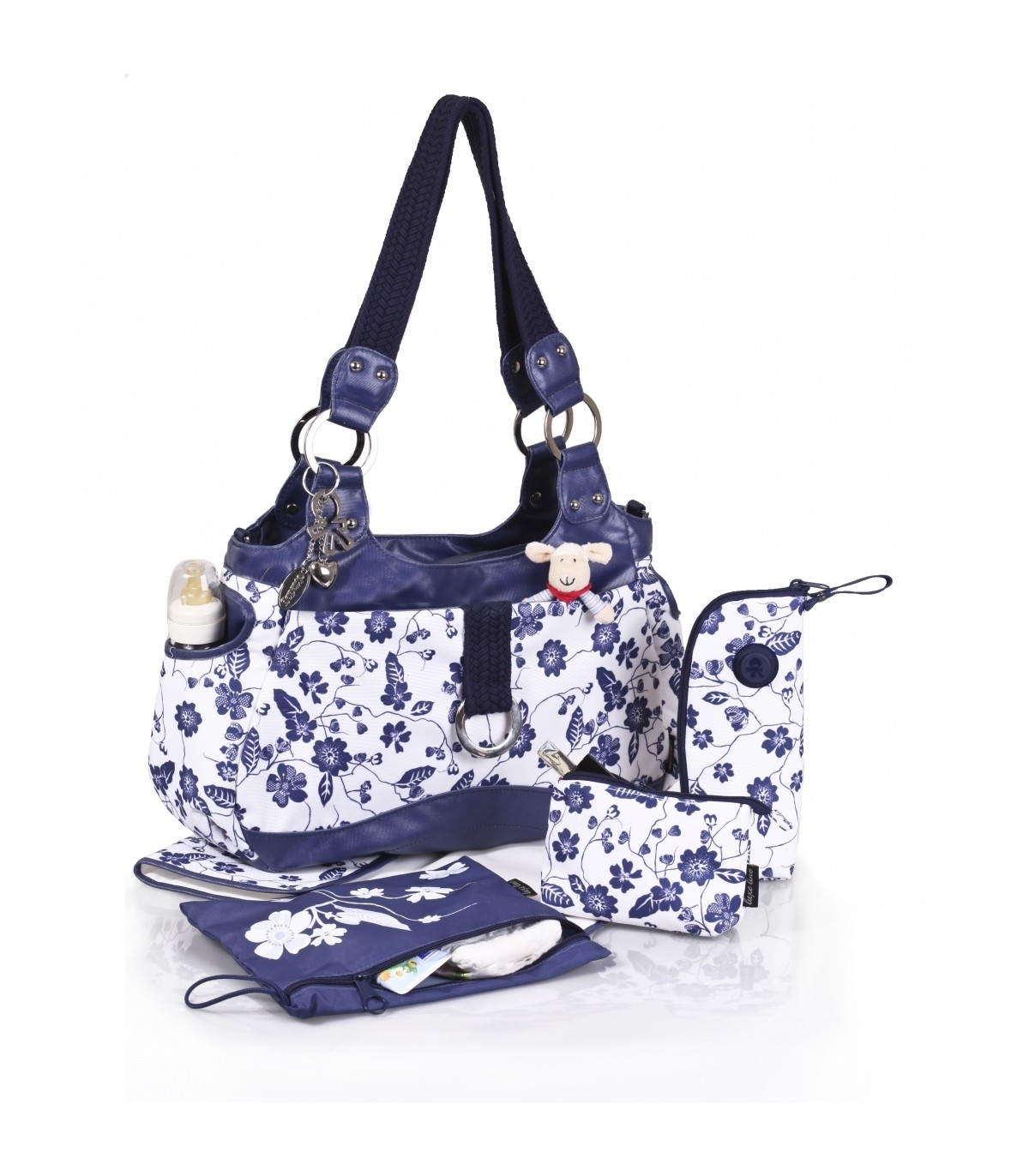 کیف مادر چرم سفید سرمه ای گلدار  Okiedog Copine Delft
