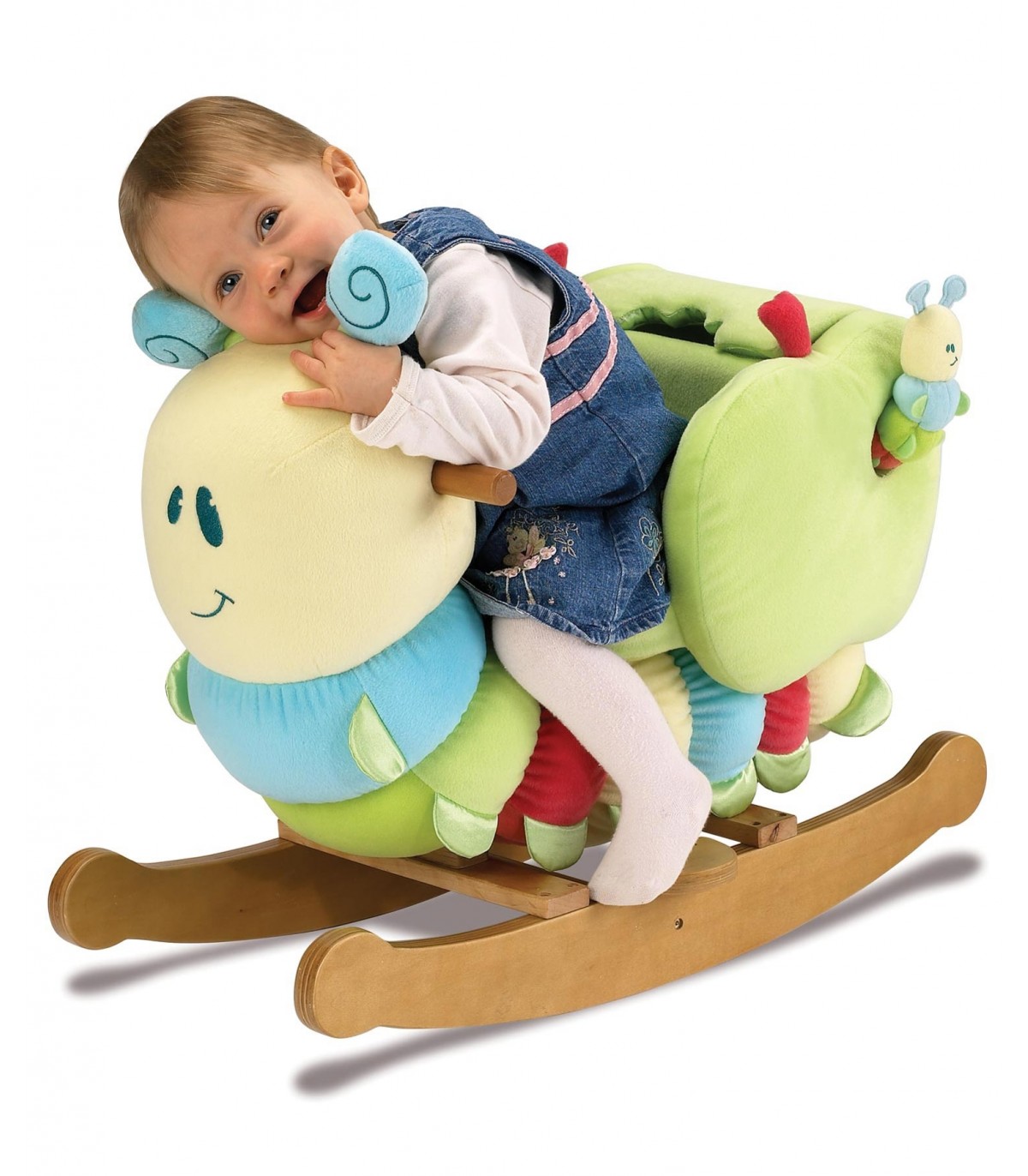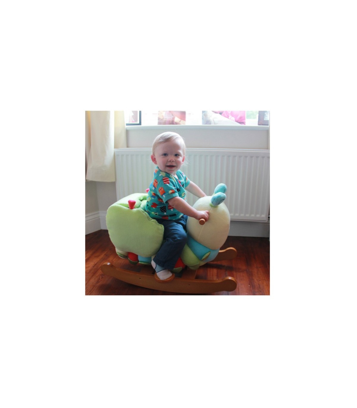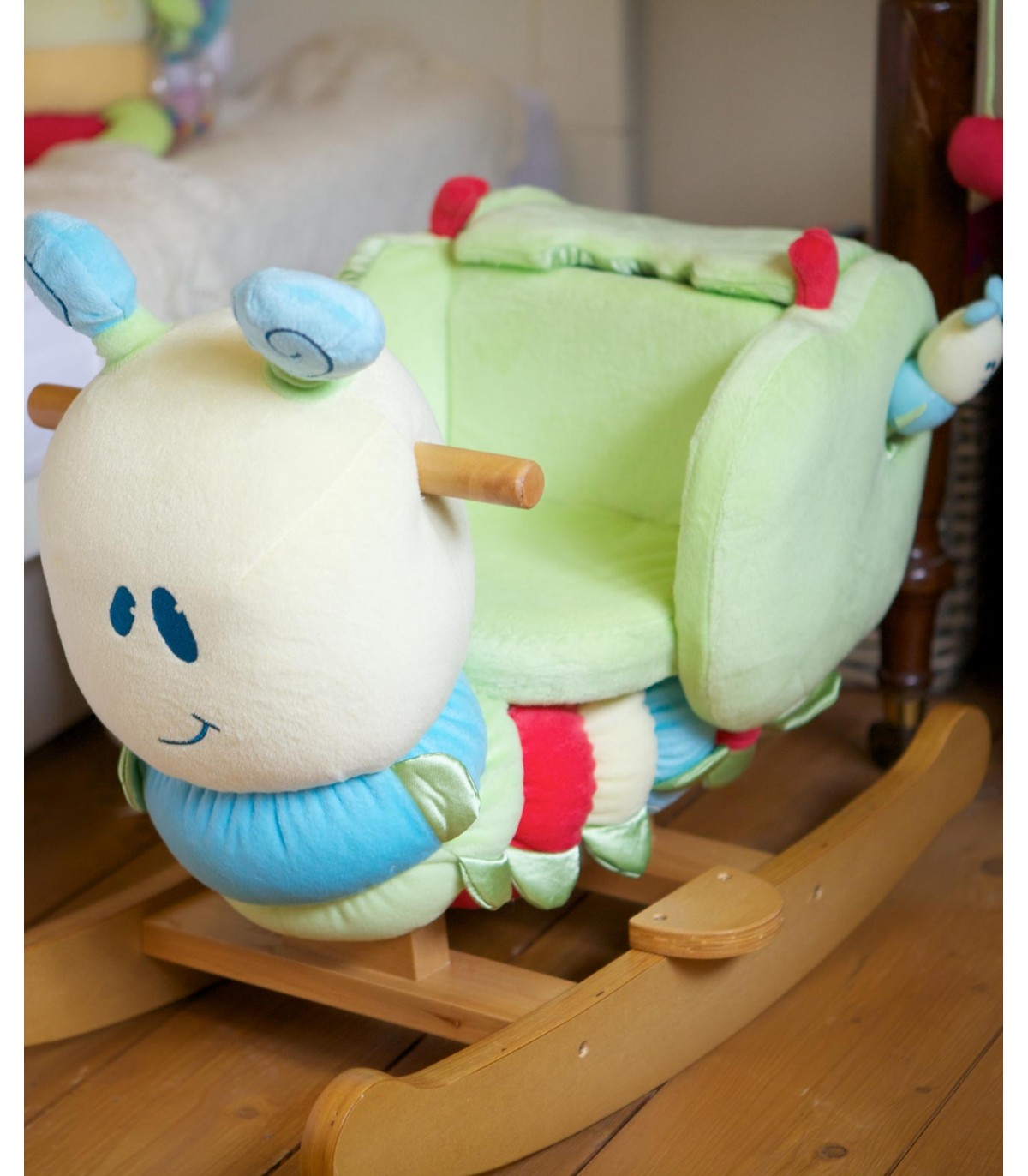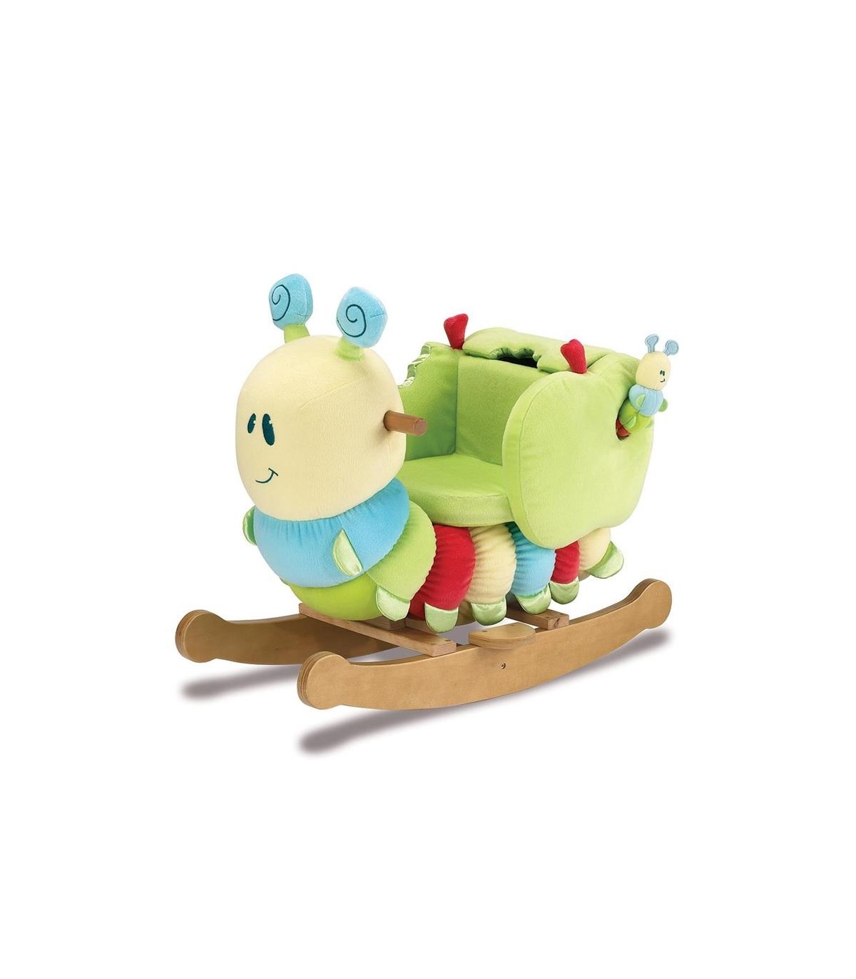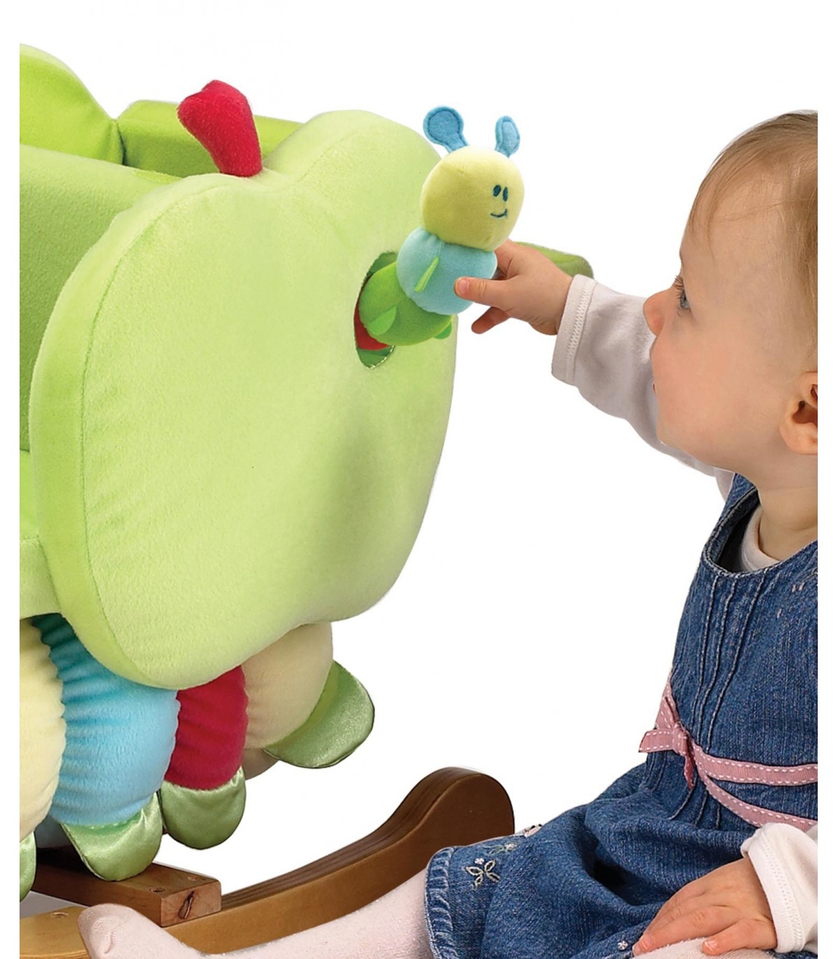 در طرح  واکر کرم ابریشم کنجکاو یک صندوقچه سبز رنگ به شکل سیب، پشتی نرم و مناسبی برای کودک فراهم می آورد که علاوه بر آن می تواند فضایی  جذاب برای ذخیره عروسک های او نیز باشد. یک عروسک اضافی نیز در صندوقچه عقب از پنجره سیب سر بیرون آورده و تنوعی از بازی ها، سرگرمی ها و صدا های مختلف در این طرح راکر یافت می شود.