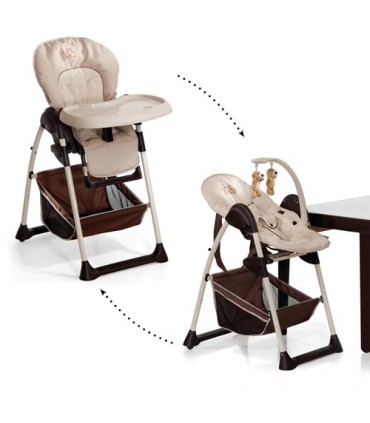 شما می توانید از این صندلی به عنوان یک صندلی تاشو یا خواب از بدو تولد استفاده کنید و زمانی که کودک شروع به خوردن غذاهای جامد می کند از آن به عنوان صندلی غذا استفاده کنید. با بزرگتر شدن کودک می توانید سینی غذا را جدا کنید و از این صندلی به عنوان یک صندلی عادی استفاده نمائید.