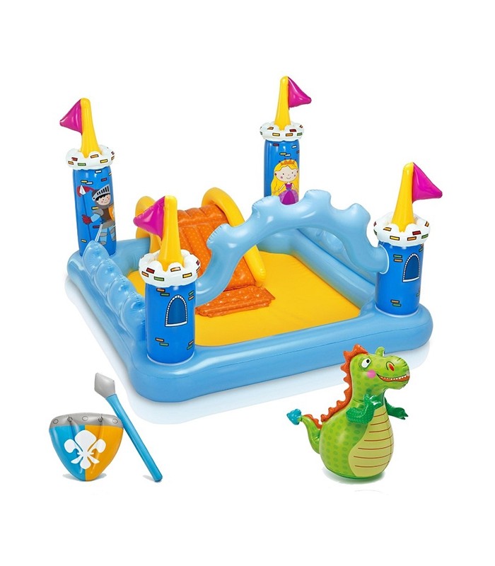 نوع دیگری از استخر بادی کودک به سرسره نیز مجهز است. این استخرها حجم آب کمتری را در خود نگه می‌دارند و به سرسره و دیگر امکاناتی مجهز هستند که به‌خوبی کودک را سرگرم می‌کنند. استخر بادی سرسره‌دار را می‌توان با آب یا توپ پر کرد. بعضی از مدل‌های این استخر بچه‌گانه به فواره هم مجهز هستند.