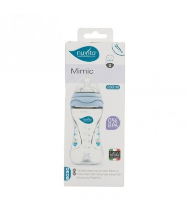 شیشه شیر طلقی 250 میل نوویتا آبی Nuvita Mimic Baby Bottle