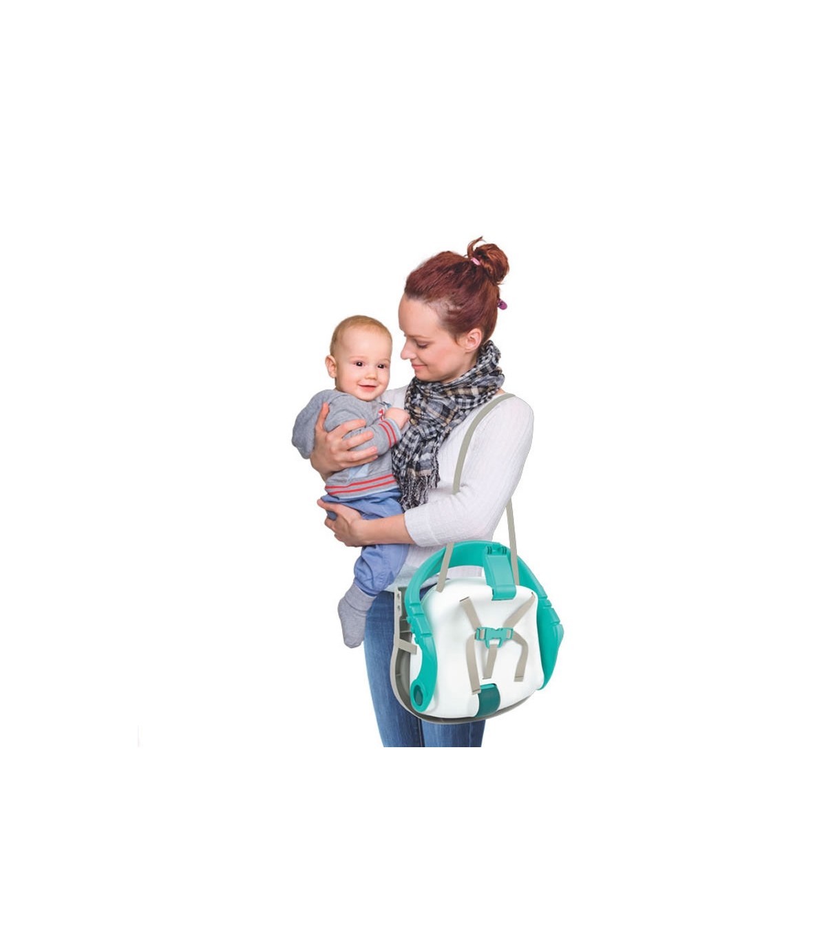 • این صندلی را می توان بر روی هر صندلی دیگری (توسط کمربندی که به آن وصل است) قرار داد.