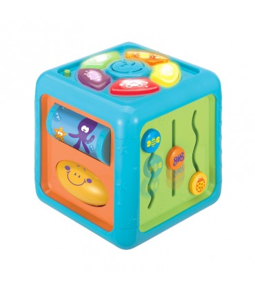 مکعب آموزشی موزیکال وین‌فان یک اسباب‌بازی ایمن برای تقویت حس کنجکاوی کودکان است. این محصول دارای ۵ دکمه با جلوه نوری با صداهای حیوانات و ملودی های سرگرم‌کننده و یک کتابچه‌ ۲ صفحه‌ای با ملودی‌های شاد است . همچنین بازی با غلتک چرخانی که عکس حیوانات دریایی دارد و یک صفحه دایره‌ای چرخان مهارت‌های حرکتی ظریف را در کودک تقویت می‌کند. مکعب آموزشی وین‌فان مناسب برای کودکان بالای ۶ ماه است.