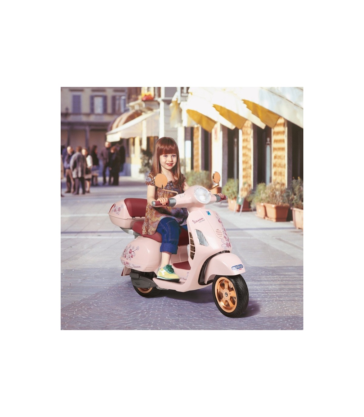 این موتور درست مثل یک وسپای واقعی اما در ابعاد کوچکتر است. این موتور الکتریکی با یک باتری قابل شارژ 12 ولت کار می کند و برای کودکان سن 3 سال به بالا طراحی شده است.