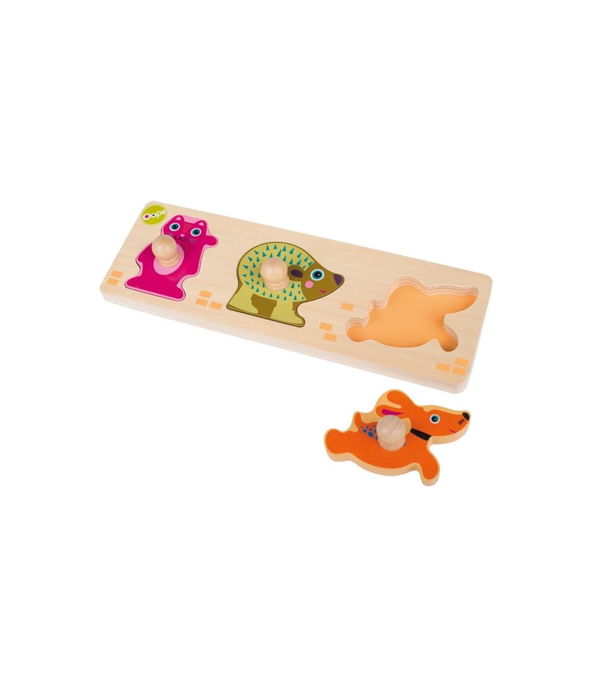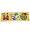 • شامل یک تخته چوبی که 3 پازل در اشکال حیوانات روی آن قرار می گیرد.