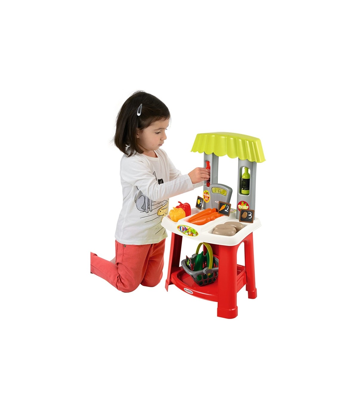 این غرفه میوه فروشی زیبا با داشتن لوازم جانبی جالب و رنگ های درخشان و دلپذیر، فرشته کوچک شما را کاملاً هیجان زده و سرگرم می کند.