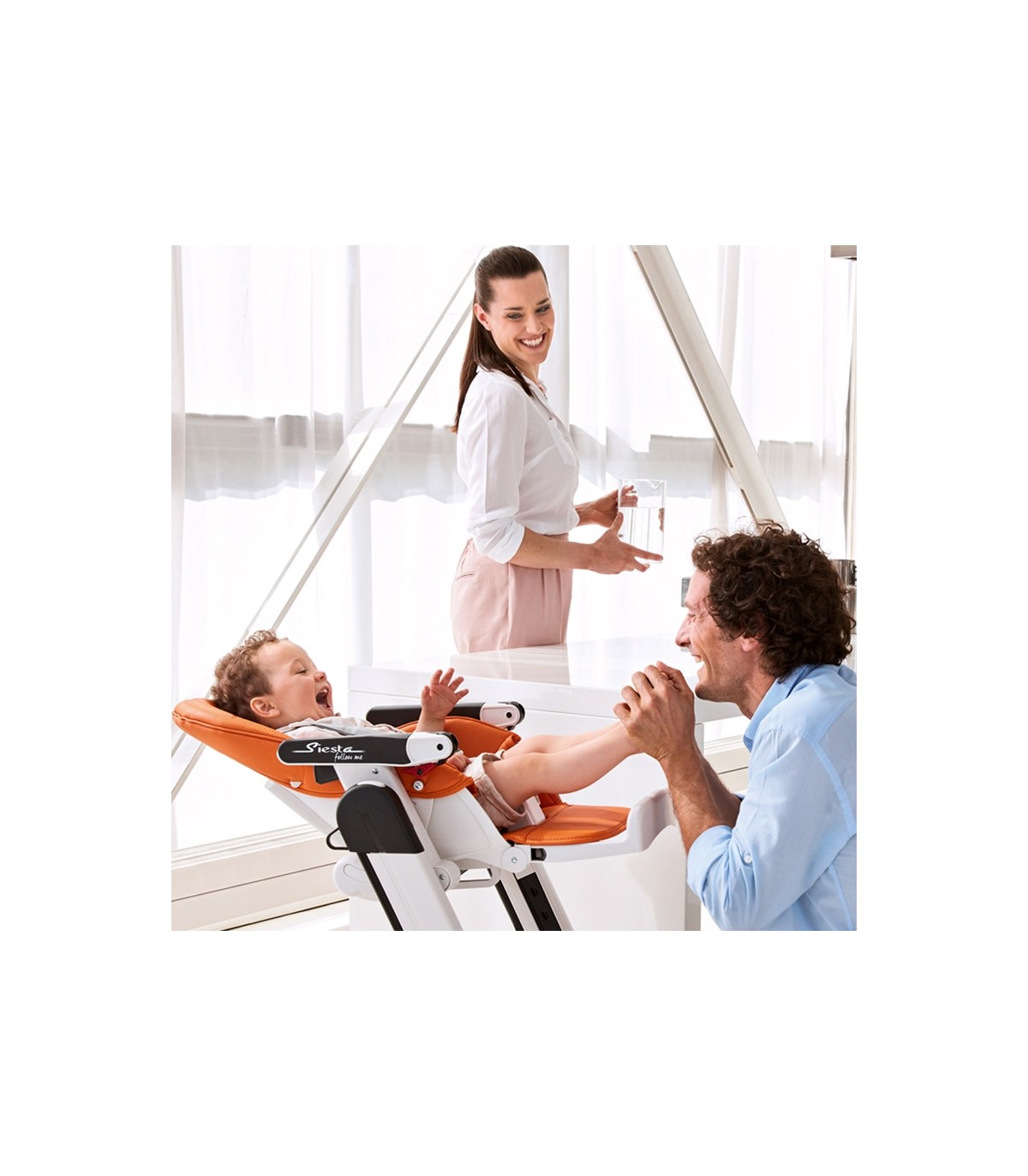 • به لطف وجود سیستم Stop&Go، صندلی غذای Siesta Follow Me همه جای خانه به دنبال شما می‌آید و سیستم قفل ترمز آن مانع از غیرفعال شدن تصادفی ترمز می‌شود.