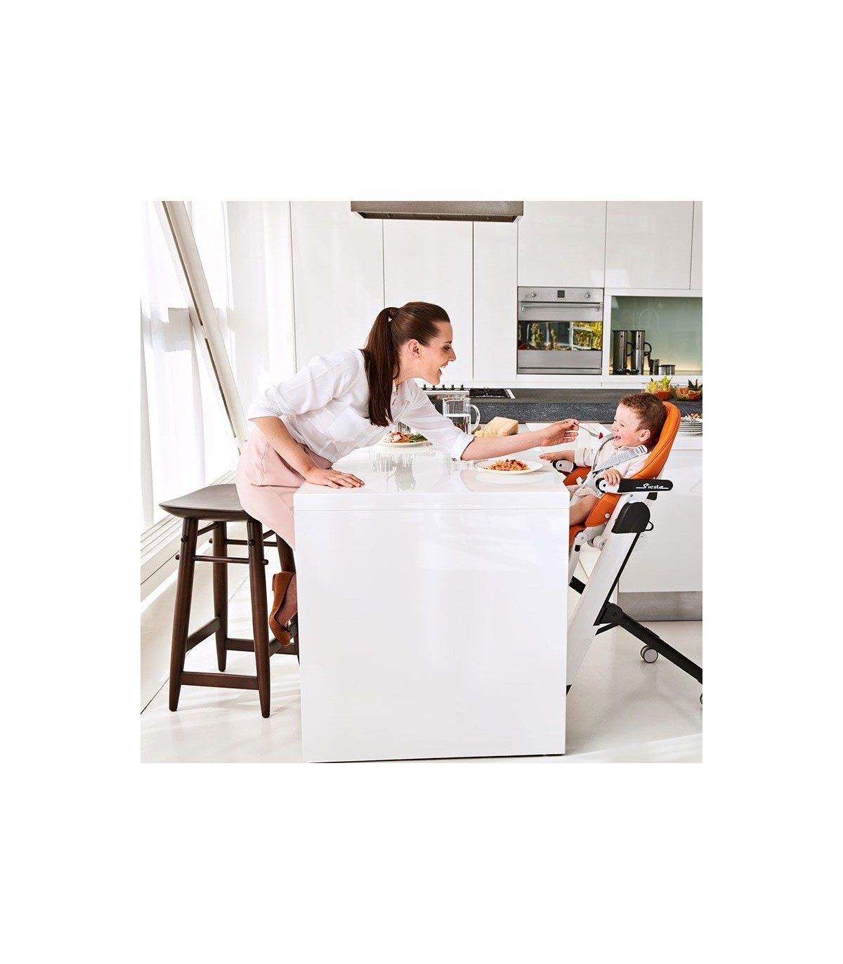 شما می توانید از این صندلی به عنوان یک صندلی تاشو یا خواب از بدو تولد استفاده کنید و زمانی که کودک شروع به خوردن غذاهای جامد می کند از آن به عنوان صندلی غذا استفاده کنید. با بزرگتر شدن کودک می توانید سینی غذا را جدا کنید و از این صندلی به عنوان یک صندلی عادی استفاده نمائید. بنابراین کودک شما می تواند با دیگر اعضای خانواده پشت میز بنشیند و از غذا خوردن لذت ببرد.