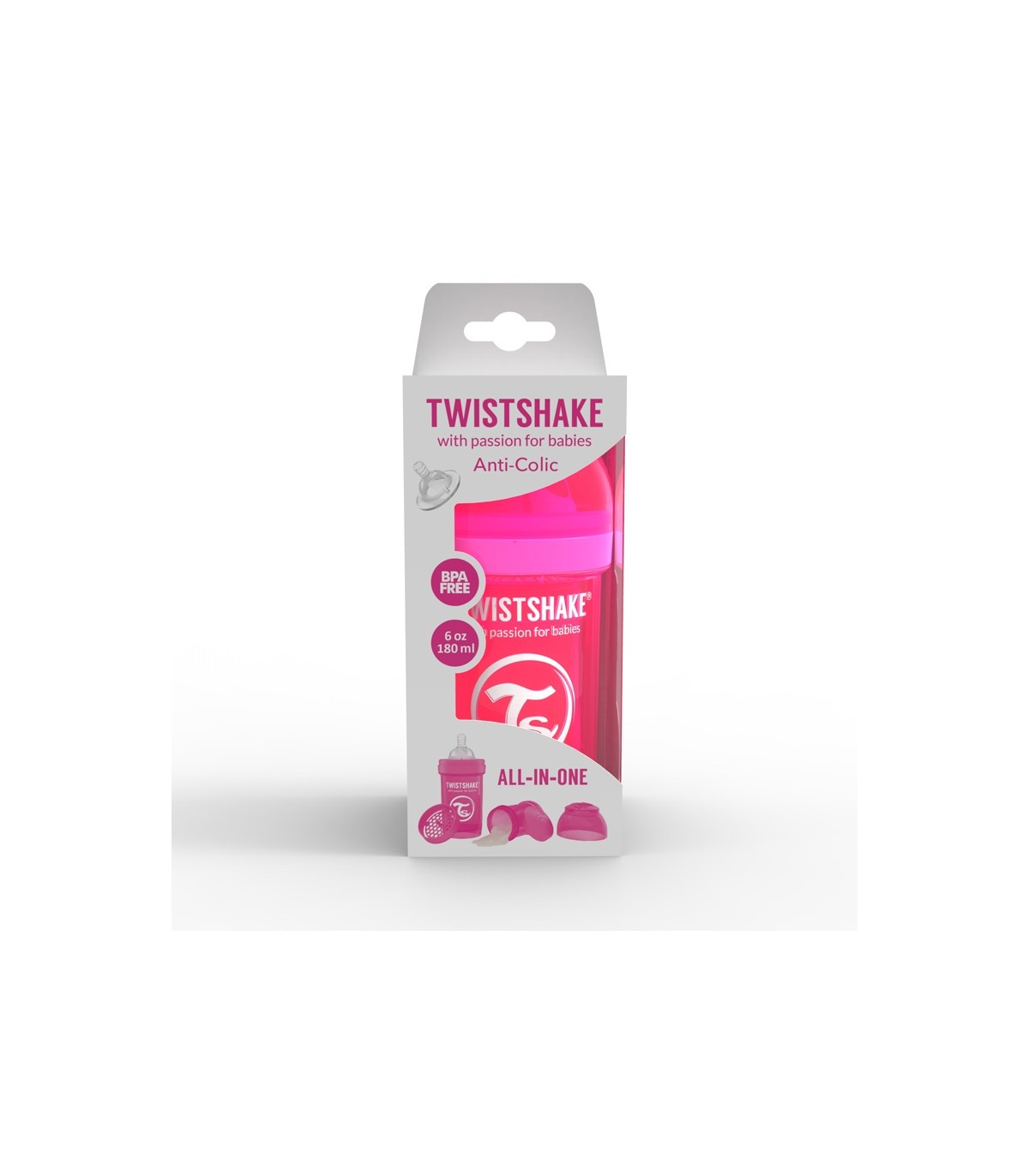 شیشه شیر آنتی کولیک 180 میل صورتی تویست شیک Twistshake Anti Colic Bottle 180ml Pink