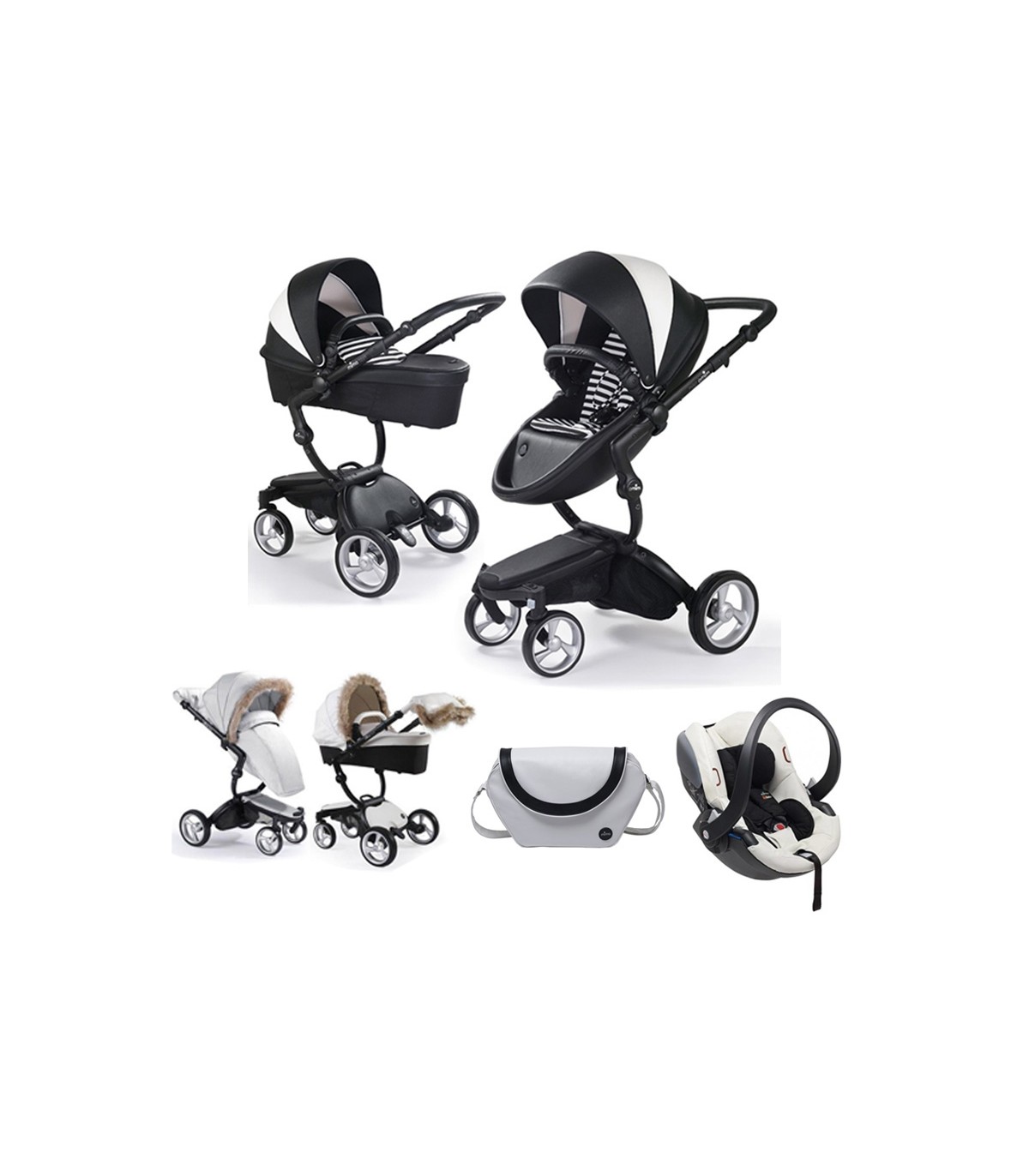 ست کالسکه کریر میما زاری سیاه و سفید با پوشش زمستانی و ساک لوازم Mima Xari Black & White