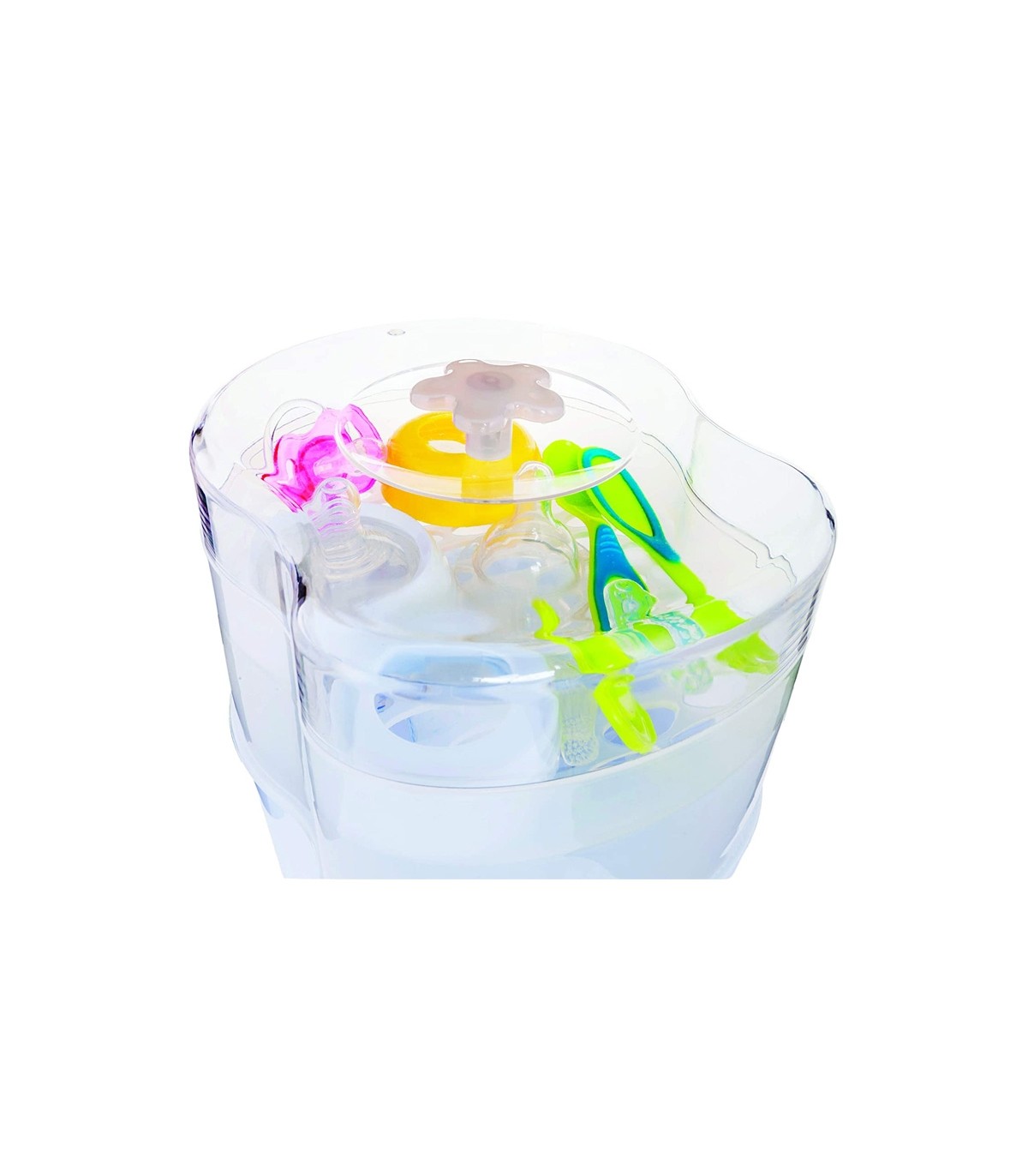 • دارای دو سینی قابل تعویض: یکی با قابلیت استریل کردن 5 شیشه شیر استاندارد و یکی با قابلیت استریل کردن 4 شیشه شیر دهانه پهن