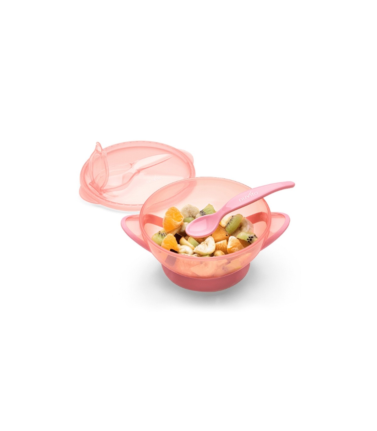 کاسه دربدار بادکش دار همراه با قاشق صورتی نوویتا Nuvita Bowl with Lid and Spoon