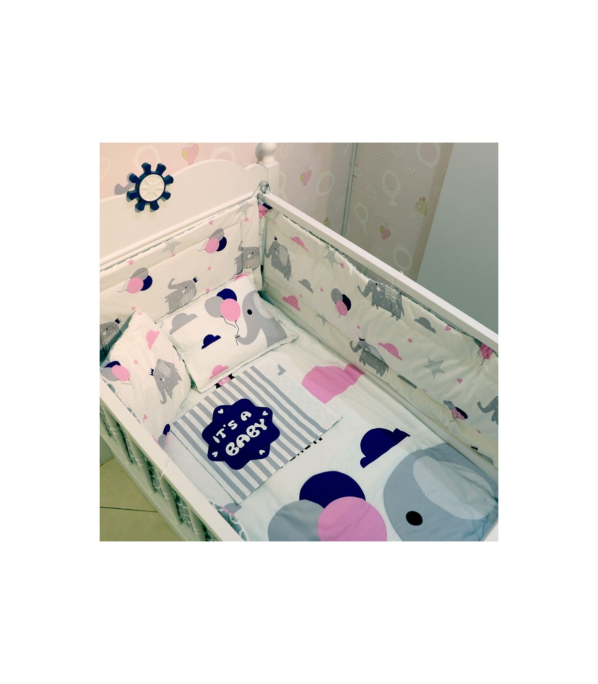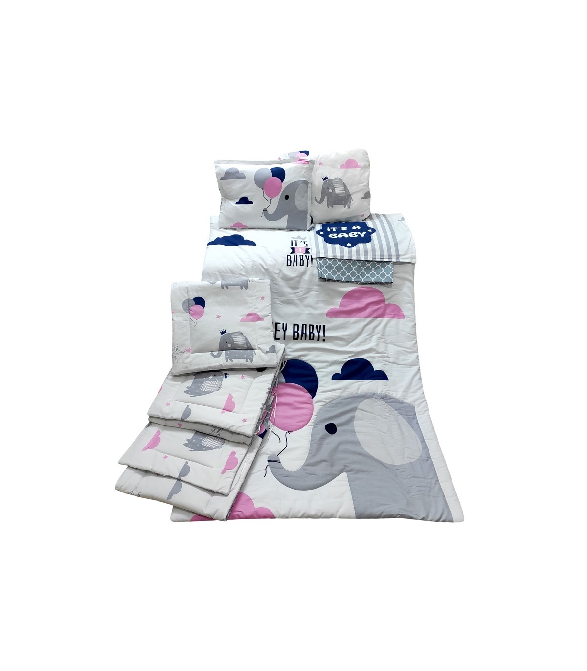 مدل/رنگ: سرویس خواب 8 تکه/سفید با طرح فیل و بادکنک صورتی
