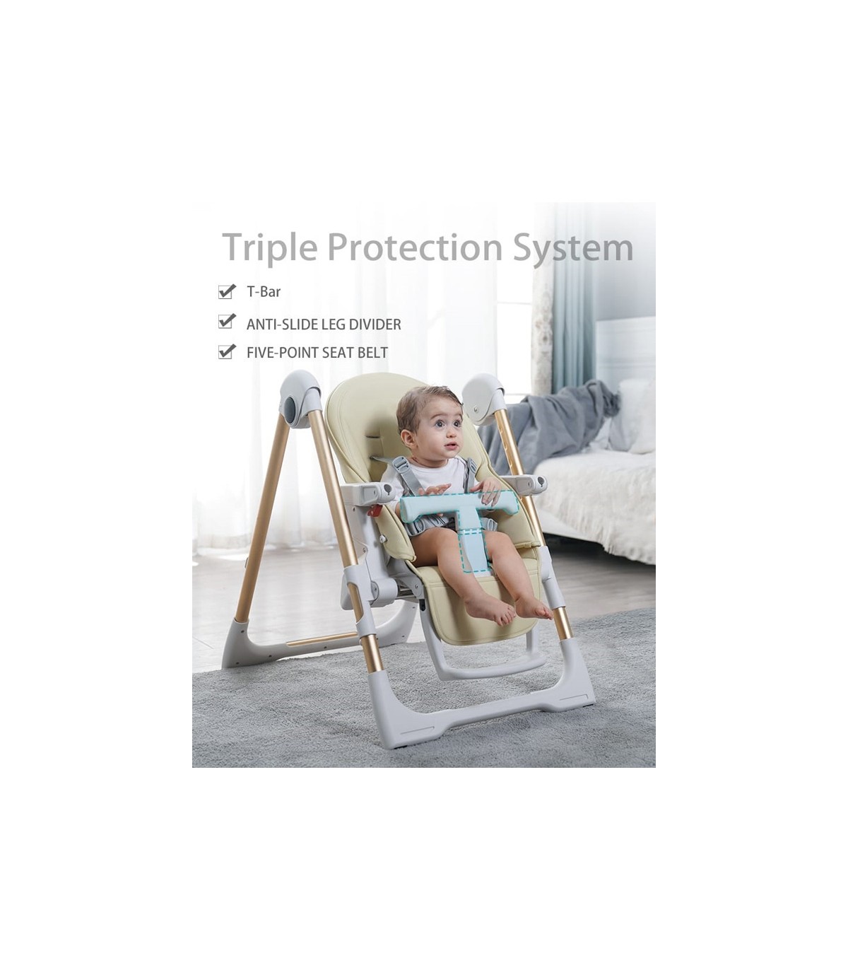 شما می توانید از این صندلی غذای کودک به عنوان یک صندلی تاشو یا خواب از بدو تولد استفاده کنید و زمانی که کودک شروع به خوردن غذاهای جامد می کند از آن به عنوان صندلی غذا استفاده کنید. با بزرگتر شدن کودک می توانید سینی غذا را جدا کنید و از این صندلی به عنوان یک صندلی عادی استفاده نمائید. بنابراین کودک شما می تواند با دیگر اعضای خانواده پشت میز بنشیند و از غذا خوردن لذت ببرد.