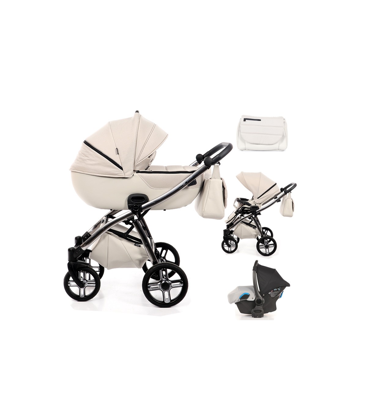 این ست زیبا و بسیار کاربردی شامل کالسکه، کریر، کریکات، ساک لوازم، دستکش زمستانی، کاور گرمکن پا، کاور باران و پشه بند است.