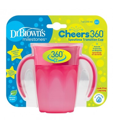 لیوان آموزشی 360 درجه دسته دار صورتی دکتر براون Dr Brown's Spoutless Transition Cup