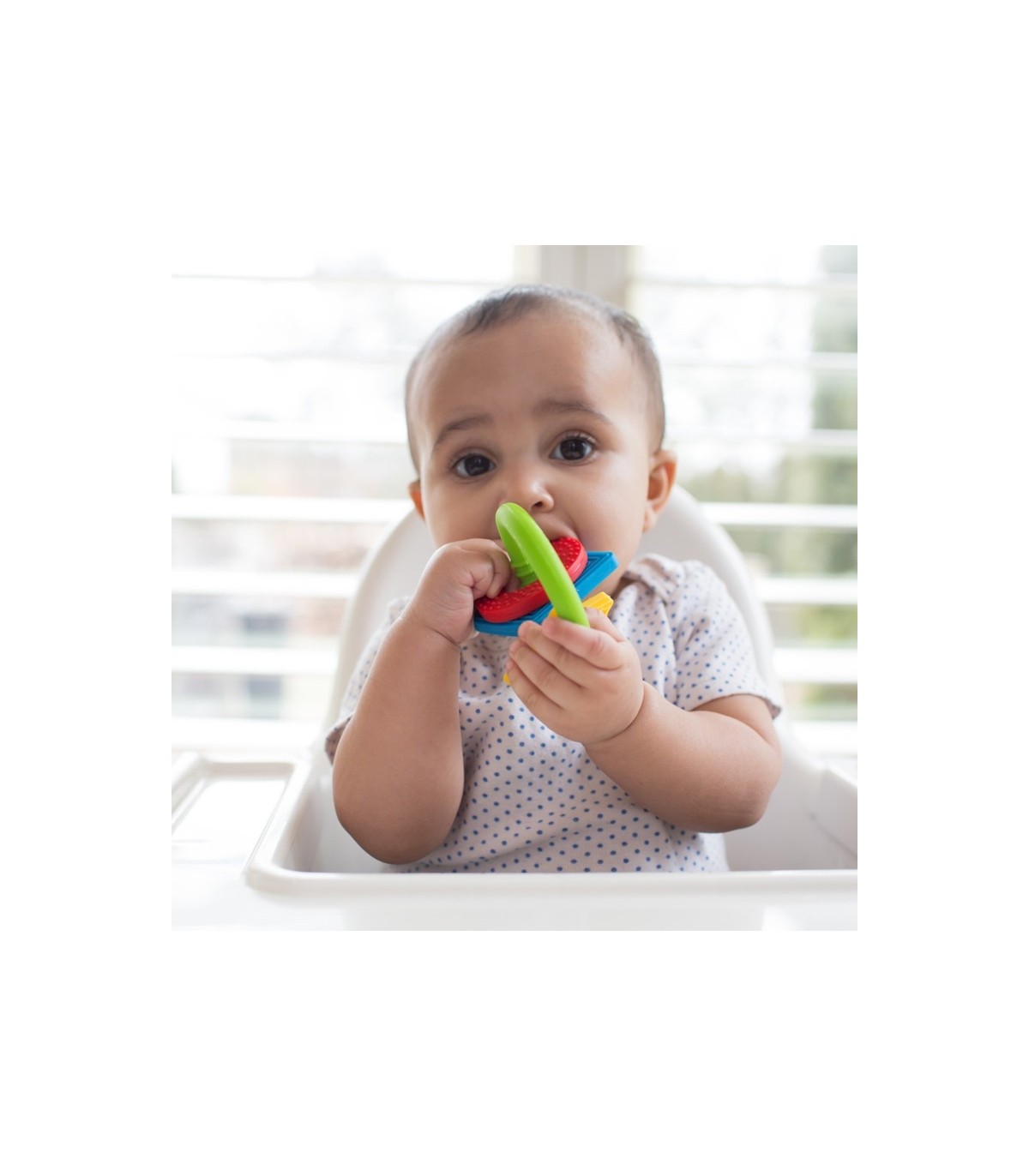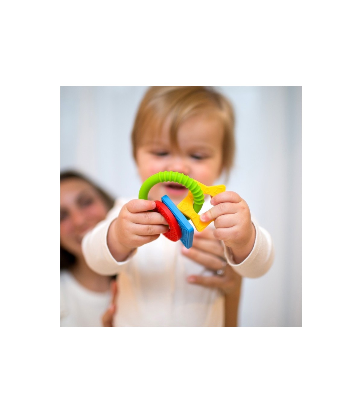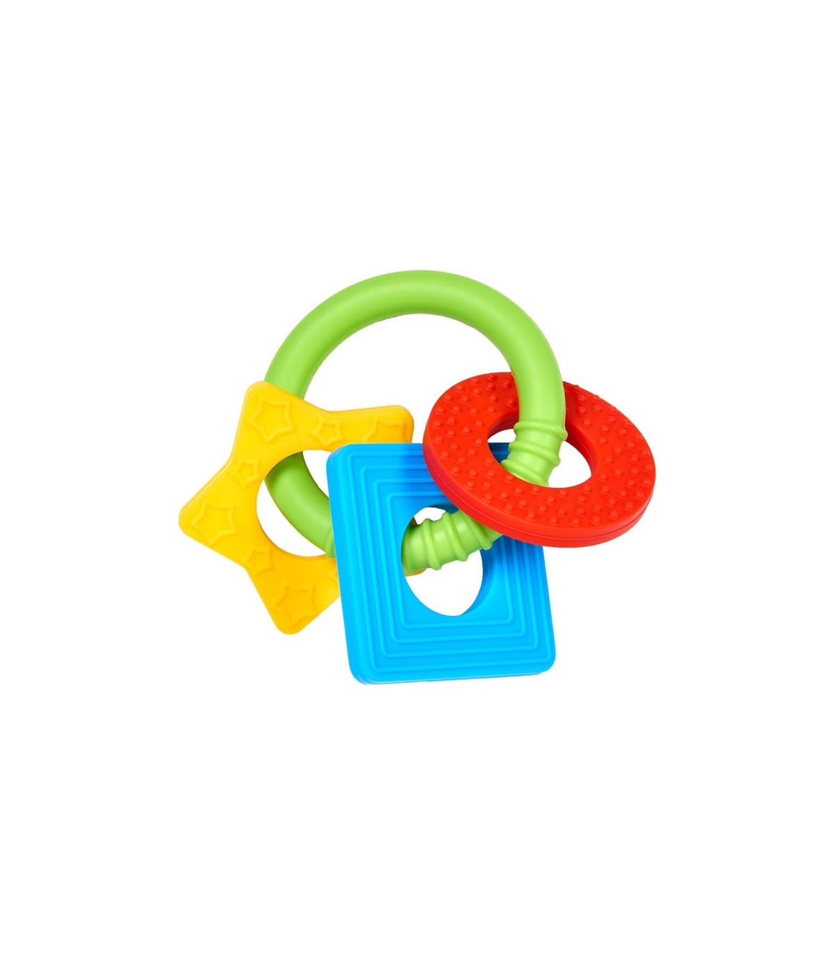 • دارای یک حلقه با آویز اشکال دندانگیر سیلیکونی دایره، مربع و ستاره