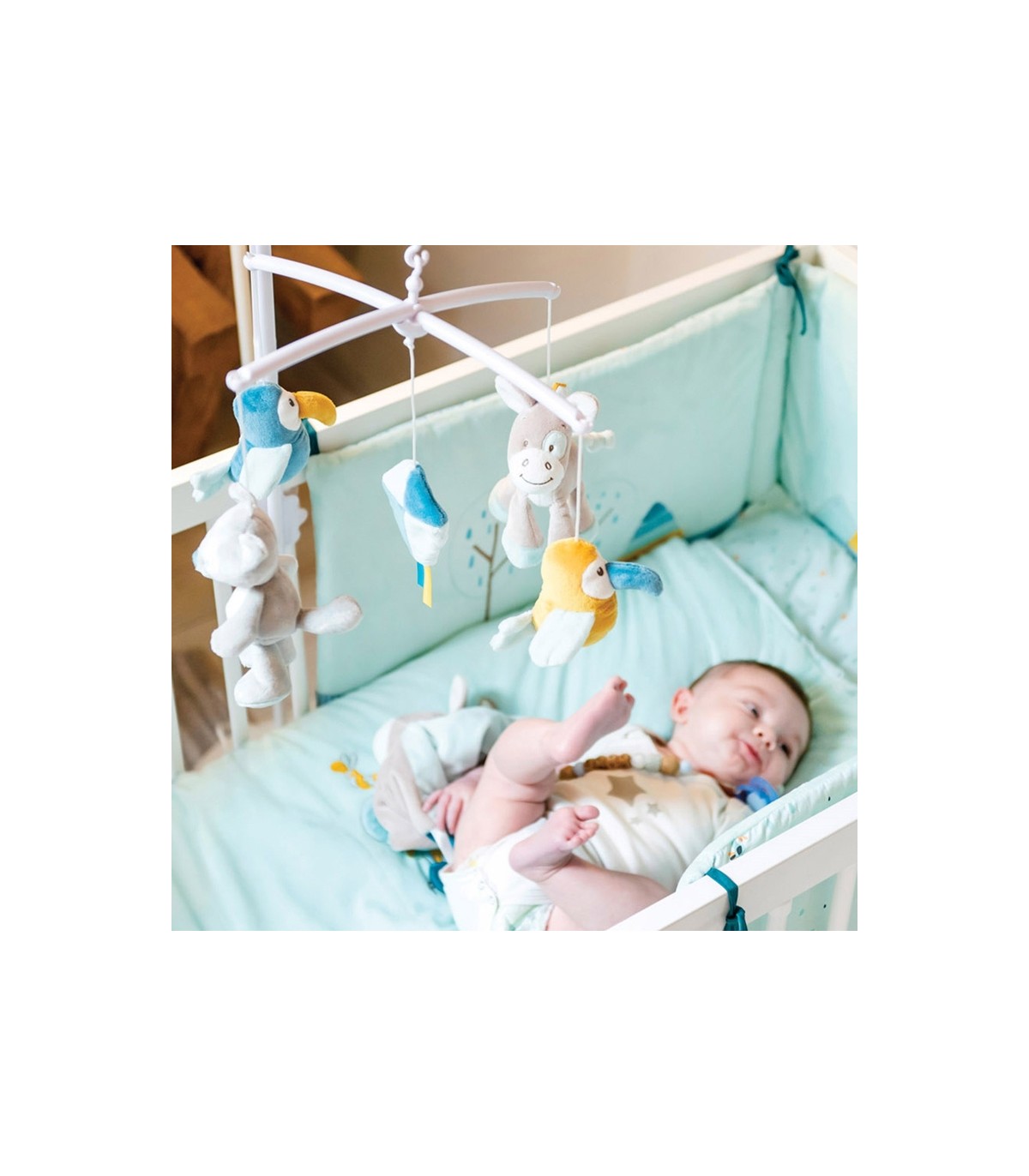 آویزهای موزیکال تخت ناتو با اسباب بازی های کوچک متصل به آن و پخش ملودی زیبا، برای زمان خواب کودک و آرامش آن ها بسیار مناسب می باشد.