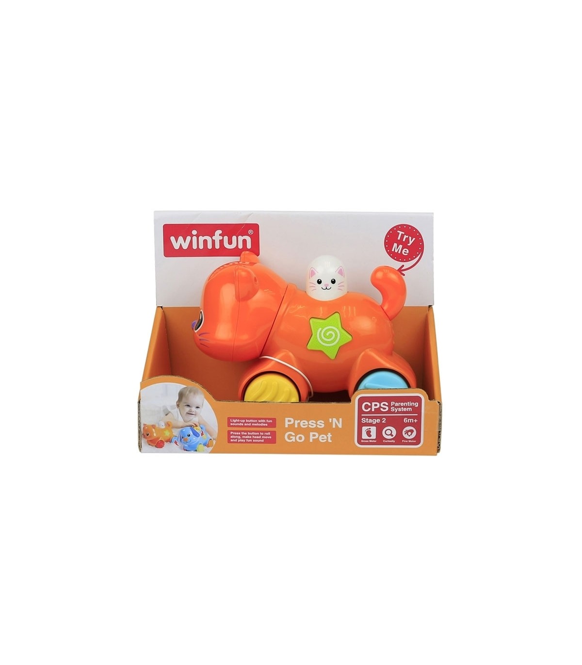 گربه فشاری موزیکال وین‌فان می‌تواند یک اسباب‌بازی حیوان خانگی کودک برای گردش در منزل باشد. گربه موزیکال وین‌فان نور چشمک‌زن و ملودی‌های سرگرم‌کننده دارد.