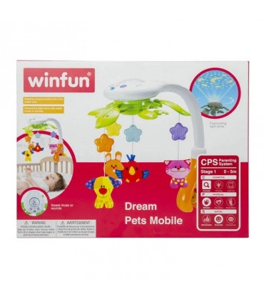 هدف برند وین‌فان طراحی اسباب‌بازی سرگرم کننده و در عین حال آموزشی است. آویز تخت چراغ‌دار موزیکال وین‌فان 4 حیوان عروسکی پولیشی چرخان دارد و به راحتی می‌توانید آن را به تخت یا گهواره کودک وصل کنید. عروسک‌ها حواس کودک را درگیر می‌کنند، حس کنجکاوی را بر می‌انگیزند و او را علاقه‌مند می‌کند تا آنها را لمس کند. عروسک‌ها قابل جدا کردن از آویز هستند و کودک می‌تواند به تنهایی هم با آن‌ها بازی کند تا ذهن و قوه تخیل کودک برانگیخته شود. جنس عروسک‌ها از پولیش بسیار نرم و ایمن و بهداشتی است و نوزاد به راحتی می‌تواند آن‌ها را لمس کند. این آویز تخت Winfun دارای پخش نور روی سقف همراه با ملودی‌های سرگر‌کننده، صدای طبیعت و 15 دقیقه لا‌لایی است و کاربرد شب‌خواب کودک را هم دارد. آویز تخت موزیکال وین‌فان دارای برچسب استیج اول CPS در محصولات وین‌فان است. این برچسب برای نوزادان از بدون تولد است. هدف از طراحی اسباب‌بازی برانگیختگی کنجکاوی، ادراک حسی و عاطفی عنوان شده‌ ا‌ست.