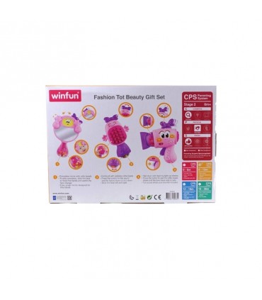 ست سشوار وین‌فان با طراحی شاد و رنگی مناسب کودکان 6 ماه به بالا است. این ست وین‌فان یک سشوار با صدای فن و آیینه و برس جغجغه‌ای دارد.
