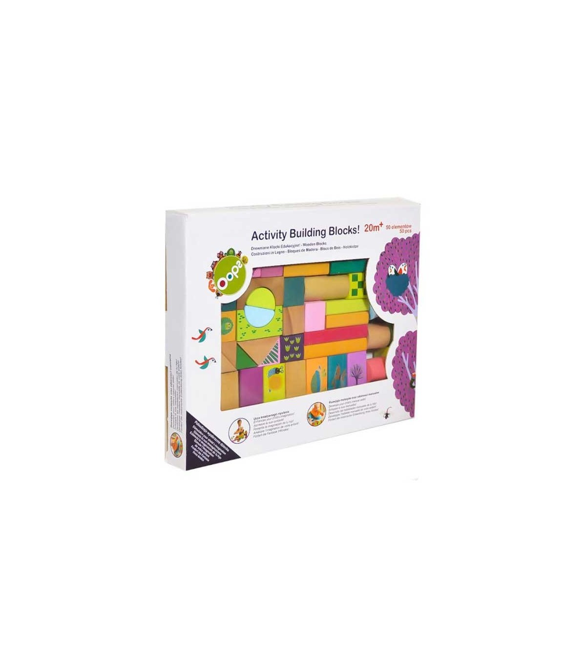 اسباب‌بازي ساختني بلوک چوبي 50 تکه اوپس مناسب پرورش قوه خلاقيت کودک بالاي 20 ماه است.