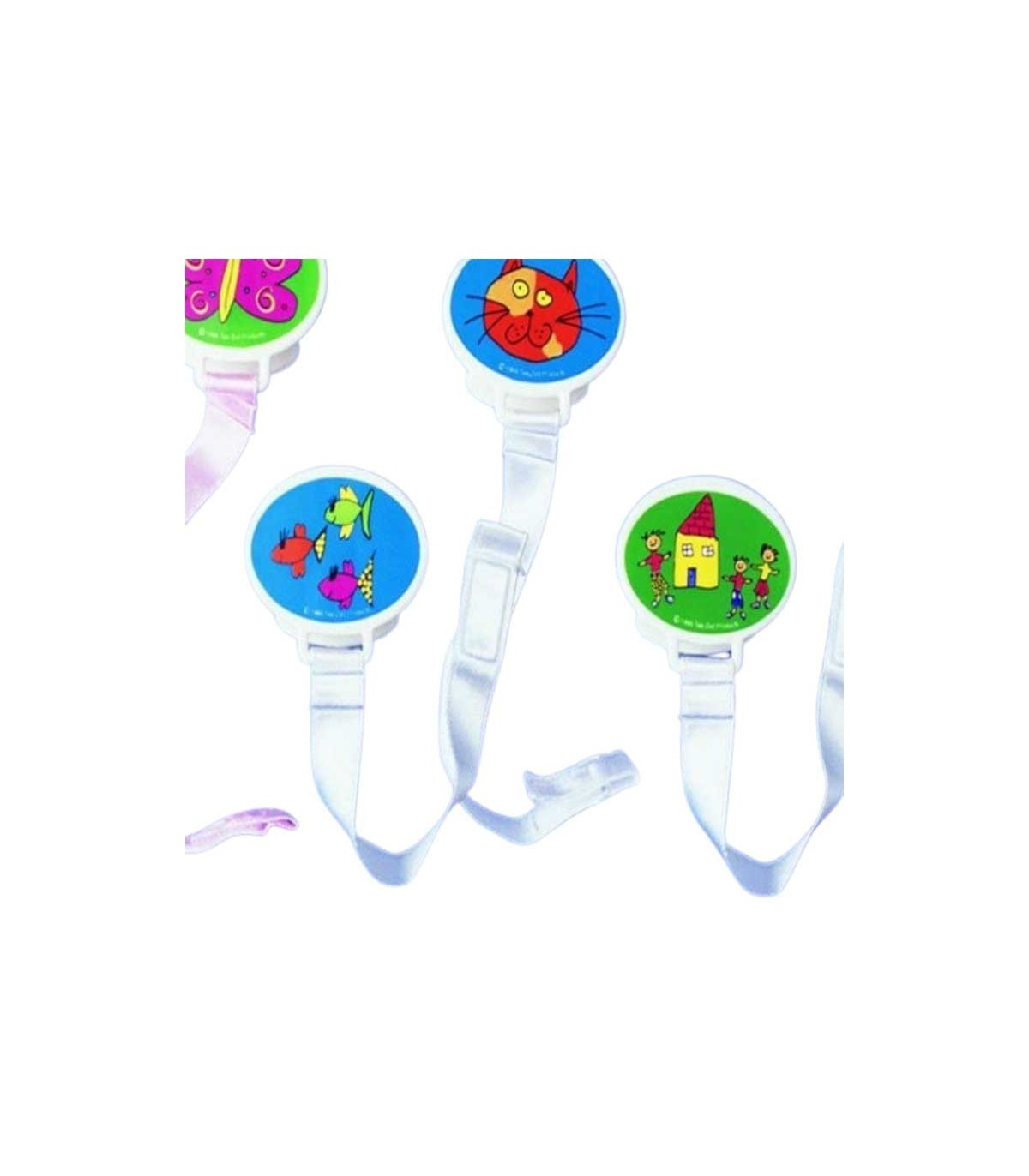 نگهدارنده پستانک دریم‌بیبی یک گیره برای اتصال پستانک به لباس کودک و جلوگیری از آلودگی آن است.