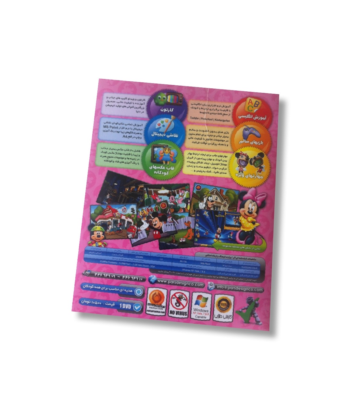 • همچنین مجموعه حاضر برای آشنایی کودک با زبان انگلیسی بوسیله مجموعه آموزشی دیزنی همراه با شخصیت های محبوبی همچون میکی موس، مینی، دانلد داک، گوفی، پلوتو و ... می کوشد تا به آموزش حروف، اعدا، رنگ ها، اشکال هندسی، کلمات، صفات اشیاء و چندین و چند مورد دیگر بپردازد. وسعی شده تا با برقراری ارتباط با نیروی تخیل و ذهن کودک به صورت مالتی مدیا و اینتراکتیو به این مهم دست یابد.