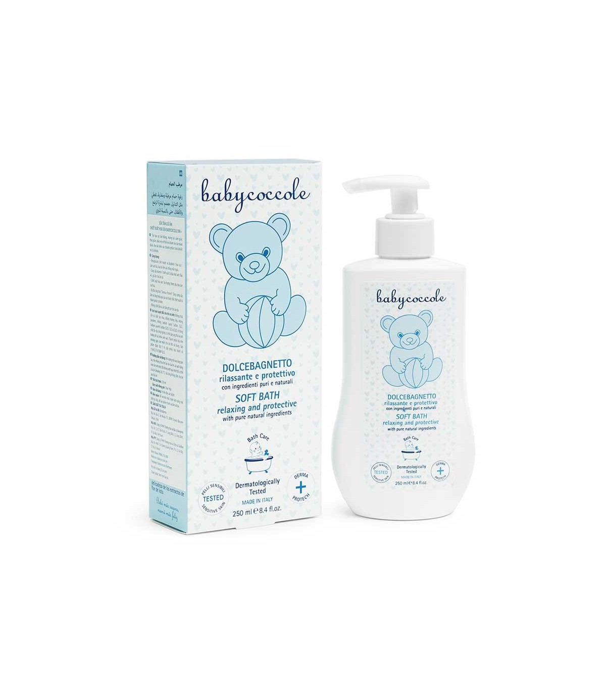 شامپو بدن بیبی‌کوکول با حجم 250 میل مناسب پوست حساس نوزادان و کودکان است.