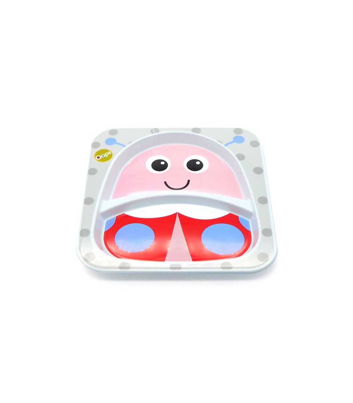 بشقاب طرح کفشدوزک اوپس با طراحی شاد و دوقسمتی قابل ‌استفاده در ماکرویو است.