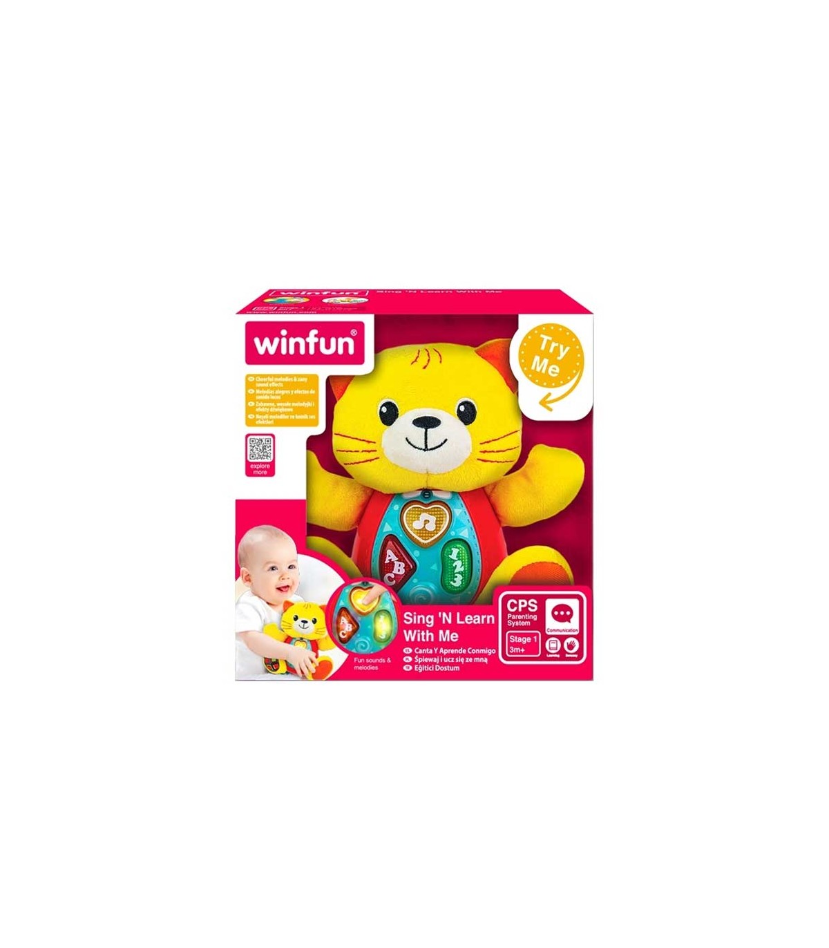 درست است که بیشتر زمان نوزادی به خواب و استراحت می‌گذرد اما خوب است بدانید که پایه اصلی مهارت‌های شناختی نوزاد را در همین زمان باید پایه‌گذاری کنید. اسباب‌بازی‌های آموزشی برند معتبر وین‌فان به همین منظور طراحی شده‌اند. عروسک پولیشی گربه وین‌فان یک محصول سرگرم‌کننده است که می‌تواند دوست کوچک فرزند شما باشد. این محصول مناسب کودکان بالای سه ماه است و سه دکمه پخش صدا برای آموزش حروف و اعداد و ملودی روی بدنه آن وجود دارد. جنس گربه از پولیش نرم است و به راحتی در دستان دلبند شما قرار می‌گیرد.