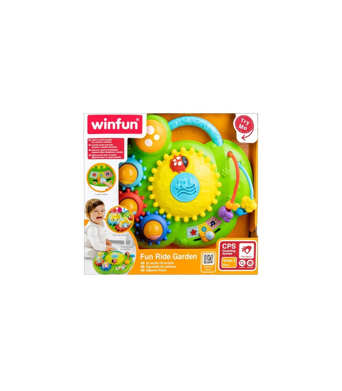 باغ چرخشی موزیکال وین‌فان یک باغ رنگارنگ موزیکال با چند فعالیت مختلف است و می‌تواند فرزند شما را ساعت‌ها سرگرم کند. این اسباب‌بازی مناسب کودکان بالای ۶ ماه است و دارای یک صفحه رنگی با چرخ‌دنده با طرح حیوان است. با حرکت یک چرخ‌دنده چرخ‌دنده‌های دیگر حرکت می‌کنند و جلوه نوری زیبایی را به وجود می‌آورند. هوش منطقی کودک در مواجهه با رابطه علت و معلولی چرخ‌دنده‌ها تقویت می‌شود. باغ وین‌فان دو حالت موسیقی  و  ۴ دکمه برای پخش ملودی های‌ شاد دارد .