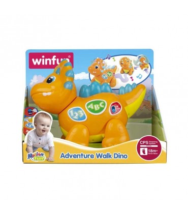 تقویت مهارت‌های حرکتی درشت در سن نوپایی بسیار مهم است و اسباب‌بازی دایناسور ماجراجو وین‌فان می‌تواند به تقویت این مهارت کمک کند. با حرکت دایناسور فلاشر و جلوه‌های نوری و موسیقی شاد روشن می‌شود و کودک را تشویق به حرکت و دنبال کردن دایناسور می‌کند. هنگام حرکت سر و دم دایناسور تکان می‌خورد و اگر ب مانعی بخورد می‌چرخد و به حرکت ادامه می‌دهد.  بر روی این محصول دو دکمه وجود دارد که دو حالت موسیقی و یادگیری را برای کودک پخش می‌کند. در حالت یادگیری آموزش حروف و اعداد به کودک آموزش داده می‌شود و در حالت موسیقی ملودی‌های شاد و سرگرم‌کننده کودک را به وجد می‌آورد.