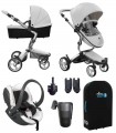 این ست کالسکه میما زاری شامل شاسی، استارترپک(ست تشک)، کریکات، صندلی ماشین نوزادی(کریر) iZi Go Modular X1 و آداپتور نصب کریر است.