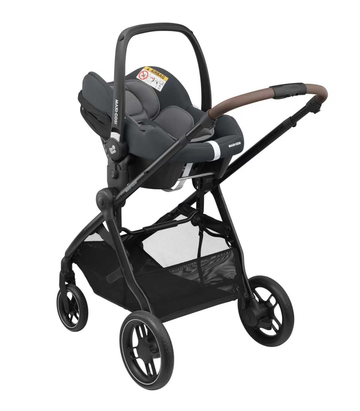 کالسکه خاکستری تیره زلیا۳ مکسی‌کوزی یک سیستم سفری ۲ در ۱ و مناسب کودکان از بدو تولد تا ۴ سالگی است.