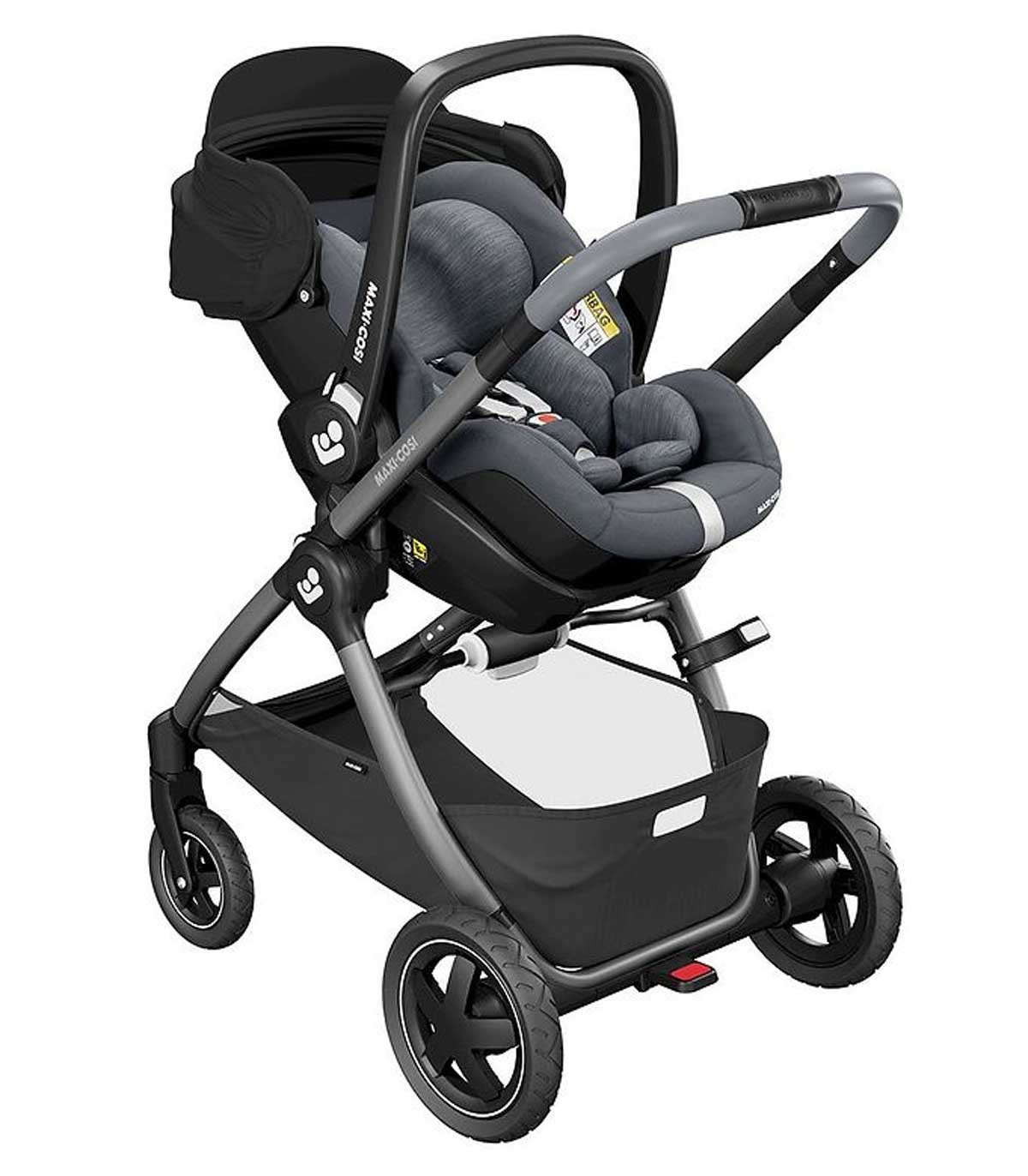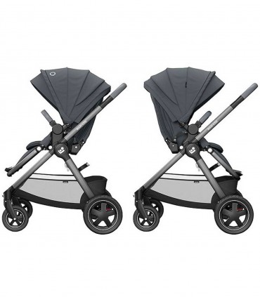 کالسکه خاکستری تیره ادورا‌ ۲ مکسی‌کوزی با پارچه قابل تنفس و سازگار با انواع صندلی ماشین مکسی‌کوزی است.