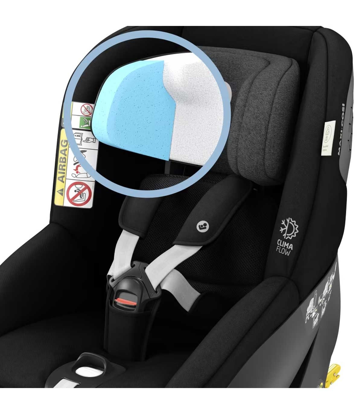 صندلی ماشین میکا پرو مکسی‌کوزی با چرخش ۳۶۰ درجه و سیستم مهار آسان، دارای بالاترین استاندارد ایمنی i-size و قابل استفاده از بدو تولد نوزاد تا ۴ سالگی است.