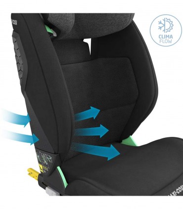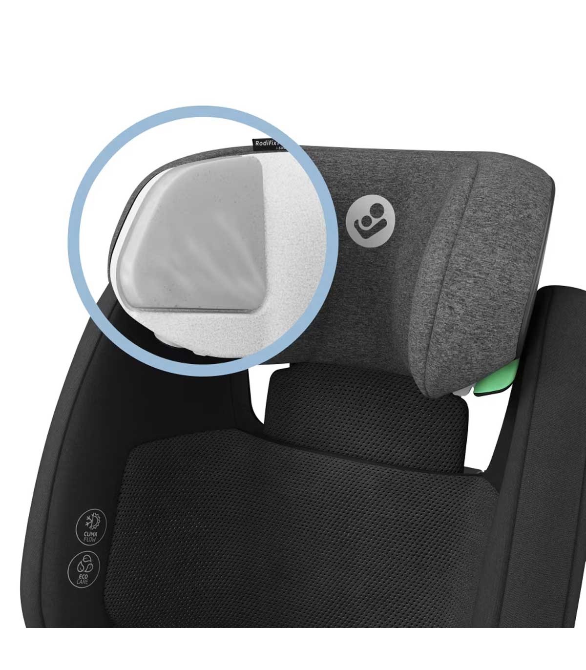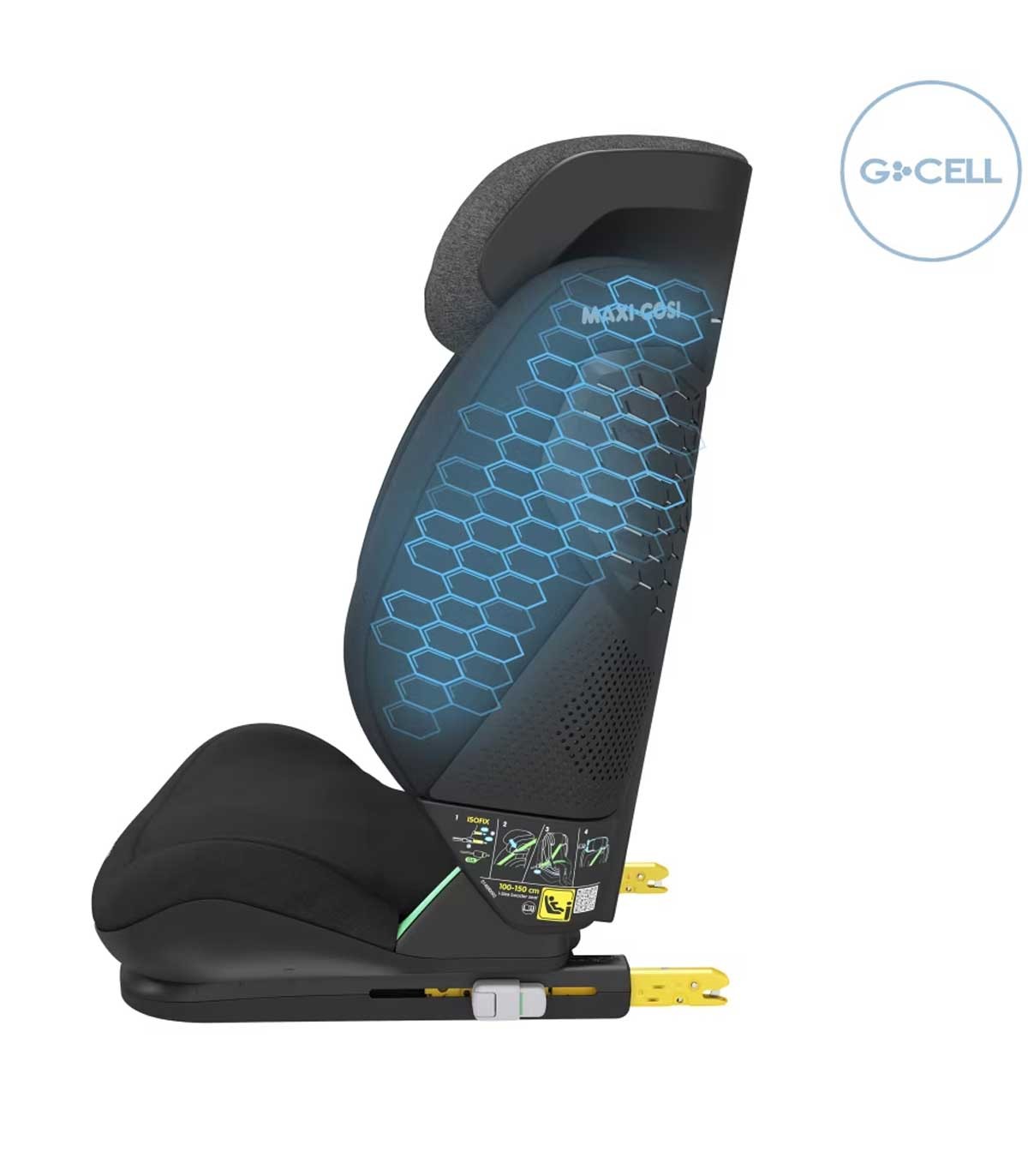 صندلی ماشین کودک رودی‌فیکس پرو i-size مکسی‌کوزی با فناوری محافظتی G-Cell 2 و بدنه مجهز به سیستم تهویه داخلی و پارچه قابل تنفس برای تنظیم دمای مناسب است. این محصول مناسب کودکان از سن ۳ تا ۱۲ سال است