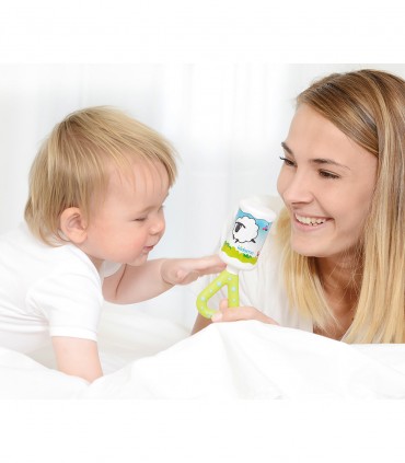 دندانگیر جغجغه‌ای، هم یک اسباب‌بازی جذاب و هم دندانگیر برای تسکین خارش لثه کودکان است.