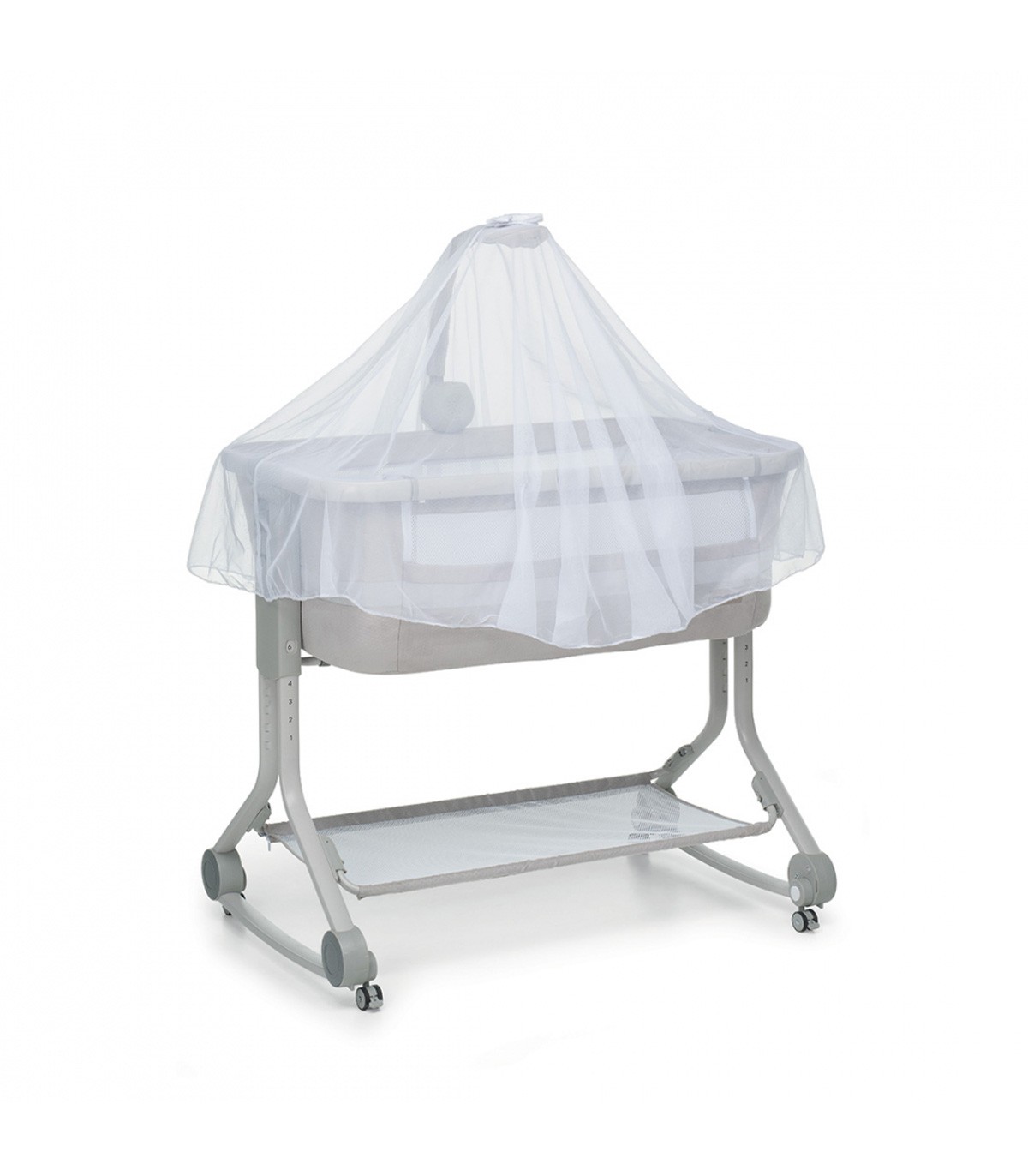 تخت نوزاد کنار مادر Mybebe با طراحی شیک و مینمال قابل تبدیل به راکر و تنظیم در ۶ ارتفاع مختلف است.