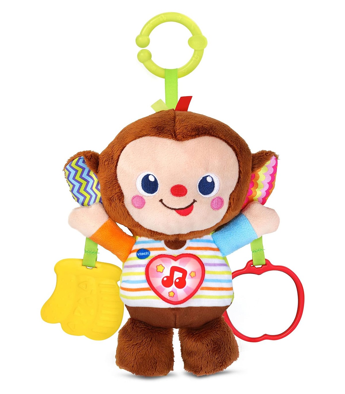 آویز کریر دندانگیر مدل Swing & Sing Monkey وی‌تک موزیکال و قابل اتصال به کالسکه و کریر کودک است.