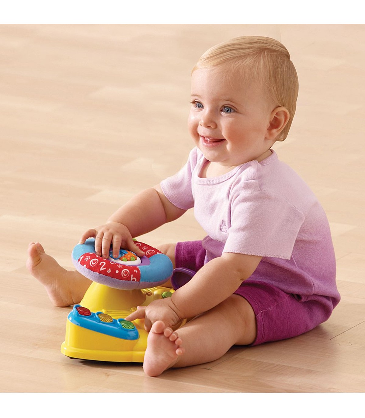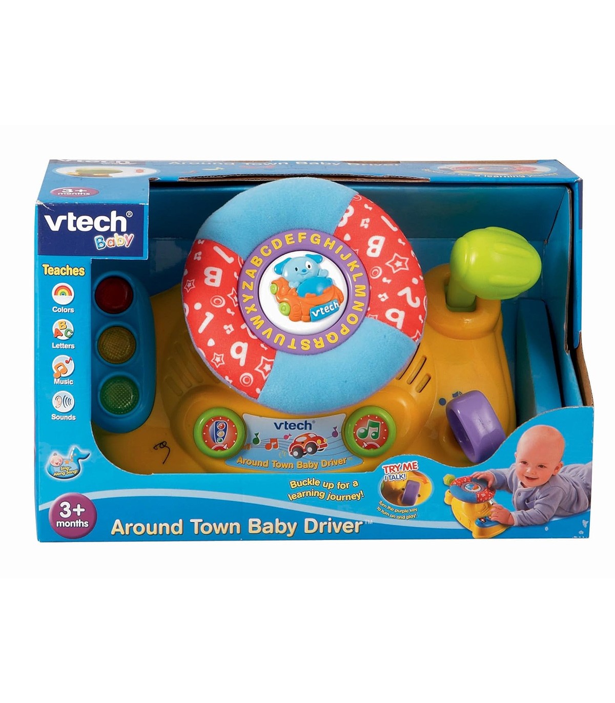 Around town baby وی تک یک اسباب‌بازی وانمودی است که به کودکان فرصت نقش‌آفرینی می‌دهد. بازی‌های وانمودی یا نقش‌آفرینی قدرت تخیل و مهارت تعامل اجتماعی کودک را تقویت می‌کنند. کودک می‌تواند سوییچ را در فرمان آموزشی و موزیکال Around town baby وی تک بچرخاند و وانمود کند که در حال رانندگی است، دنده را تغییر دهد و در حین بازی با حروف، رنگ‌ها آشنا شود. این اسباب‌بازی موزیکال دارای چراغ راهنمایی چشمک‌زن است و بیش از ۳۵ ترانه و ملودی و عبارات سرگرم‌کننده دارد. فرمان موزیکال وی‌تک ایمن است و برای کودکان از سن ۳ ماهگی تا ۲ سالگی یک بازی جذاب آموزشی جذاب است.