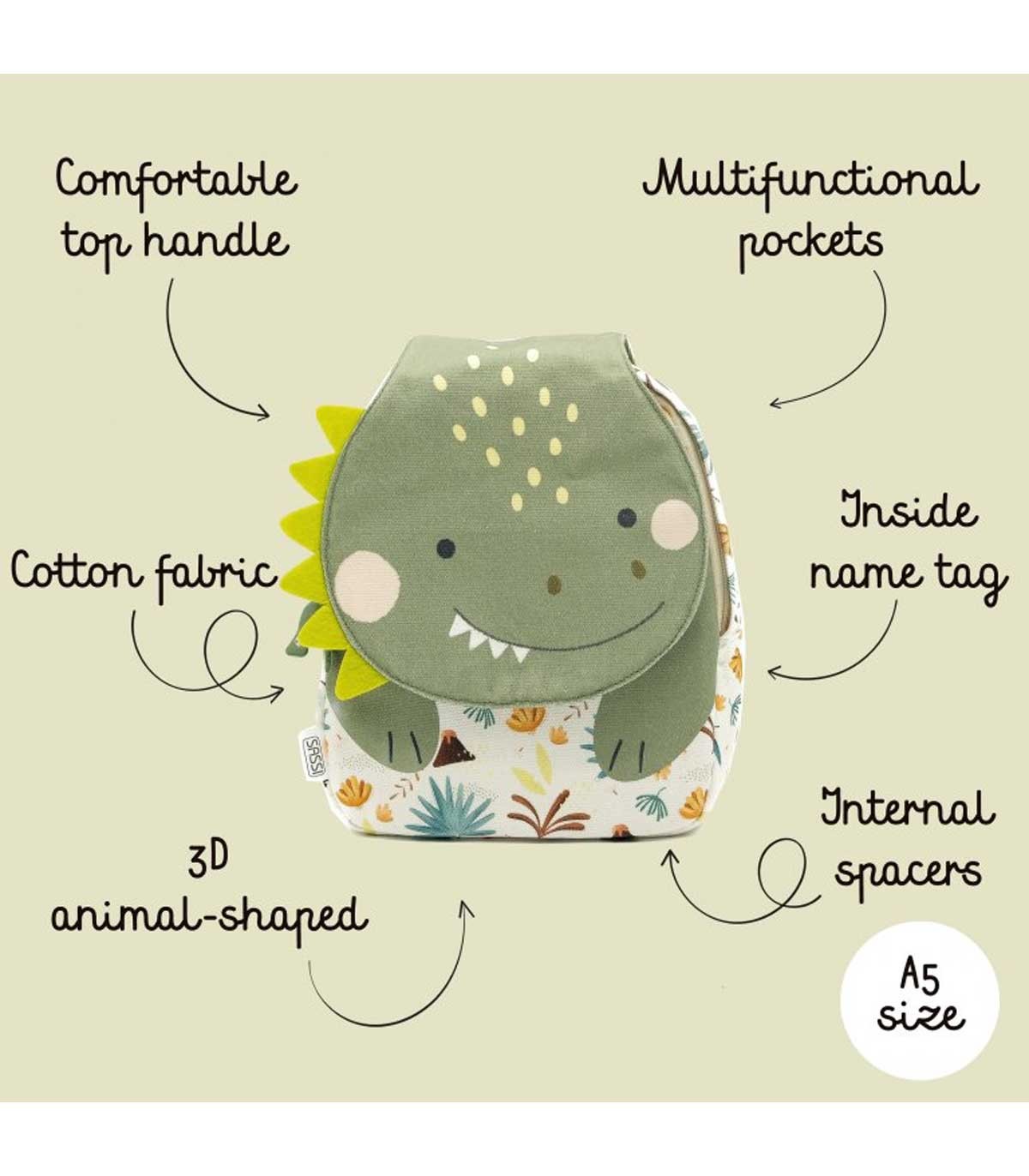 پسر بچه‌ها معمولا در سن پیش از دبستان به کاراکتر دایناسور بسیار علاقه دارند. کوله‌پشتی طرح دایناسور سایز کوچک، یک کوله پشتی پسرانه از برند معتبر و ایتالیایی sassi است. این کوله با طرح سه‌بعدی و جذاب دارای یک جیب داخلی است.