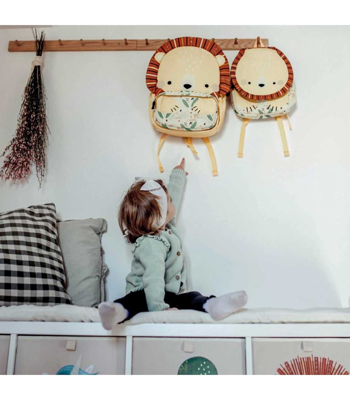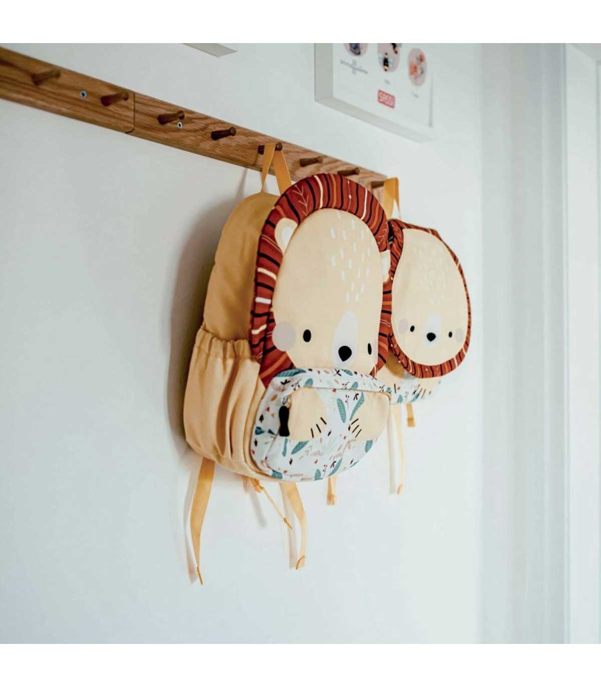 کوله‌پشتی طرح شیر سایز بزرگ یک محصول جادار از برند معتبر و ایتالیایی sassi است. این کوله با طرح سه‌بعدی و جذاب دارای جیب برای قرار دادن قمقمه آب کودک، یک جیب در جلوی کوله و یک جیب در داخل است.