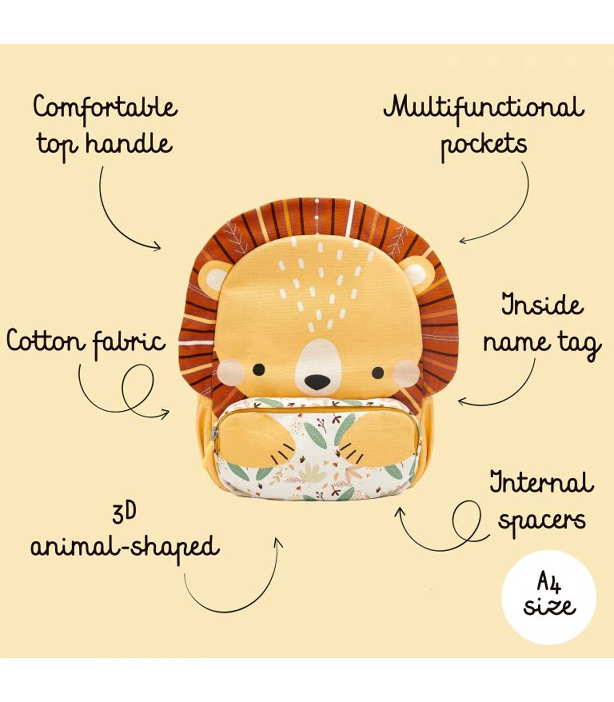 کوله‌پشتی طرح شیر سایز بزرگ (A4) مناسب استفاده در پیش‌دبستانی است.