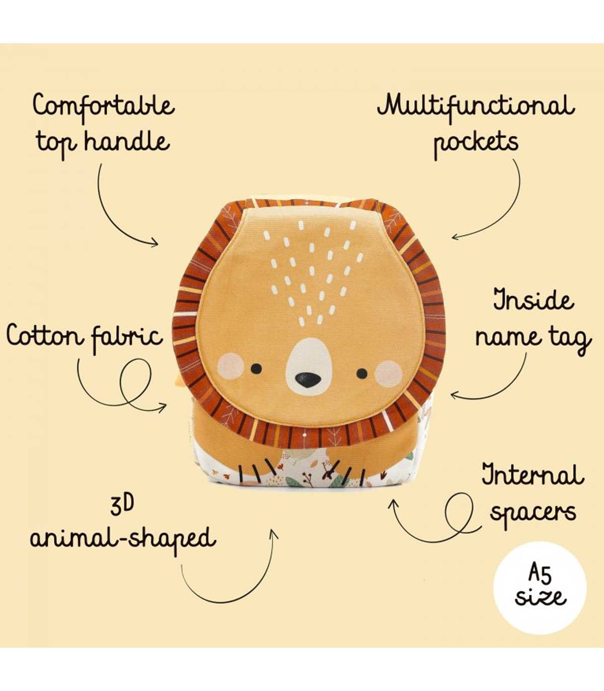 کوله‌پشتی طرح شیر سایز کوچک (A5) مناسب استفاده در مهد‌کودک است.