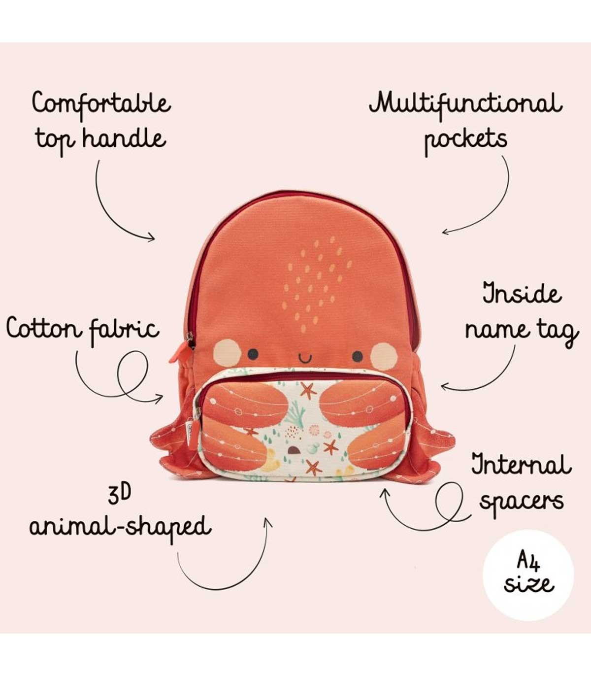 کوله‌پشتی طرح اختاپوس سایز بزرگ (A4) مناسب استفاده در پیش‌دبستانی است.
